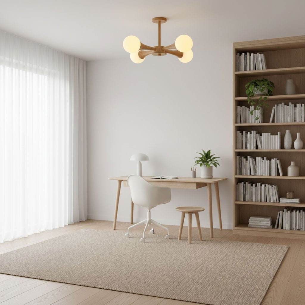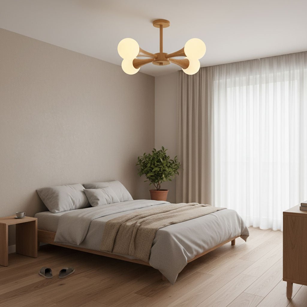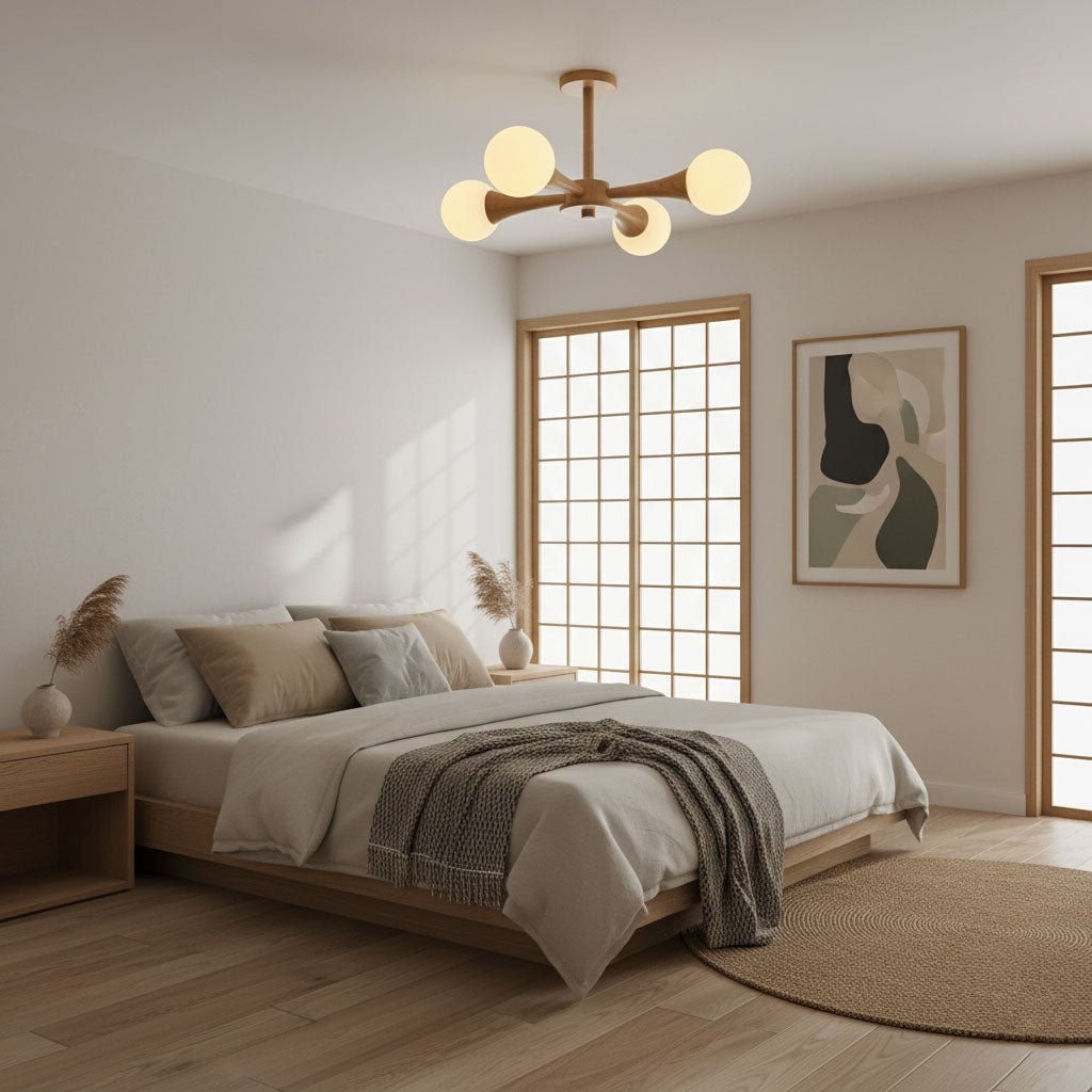 • Ceiling Fixtures: Bedrooms benefit from soft, ambient lighting. Use the room dimension formula to ensure the ceiling fixture is properly scaled. Semi-flush or flush mounts work well for general lighting, while sconces or bedside lamps provide focused task lighting.