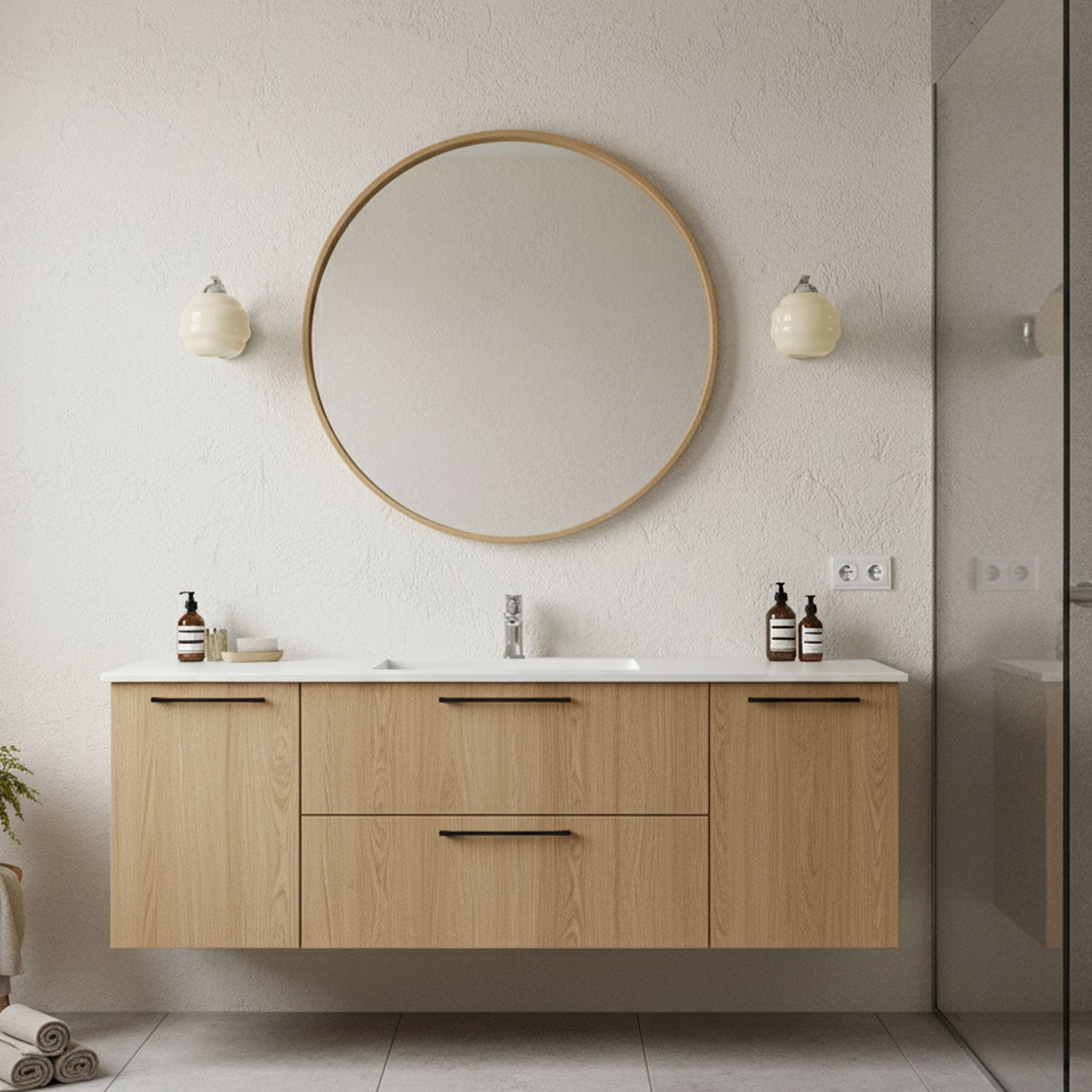 Vanity Lighting: For task lighting, place sconces on either side of the vanity mirror to minimize shadows. These should be mounted 65-70 inches from the floor, and spaced appropriately for even lighting.