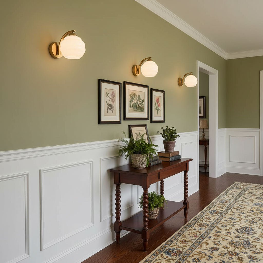 | Entryway/Hallway | Length + Width formula for entryways. For hallways, use evenly spaced lights. | Chandeliers, flush mounts, wall sconces. | Chandeliers in entryways should hang at least 7 feet from the floor. In hallways, space lights evenly, about every 8-10 feet. |