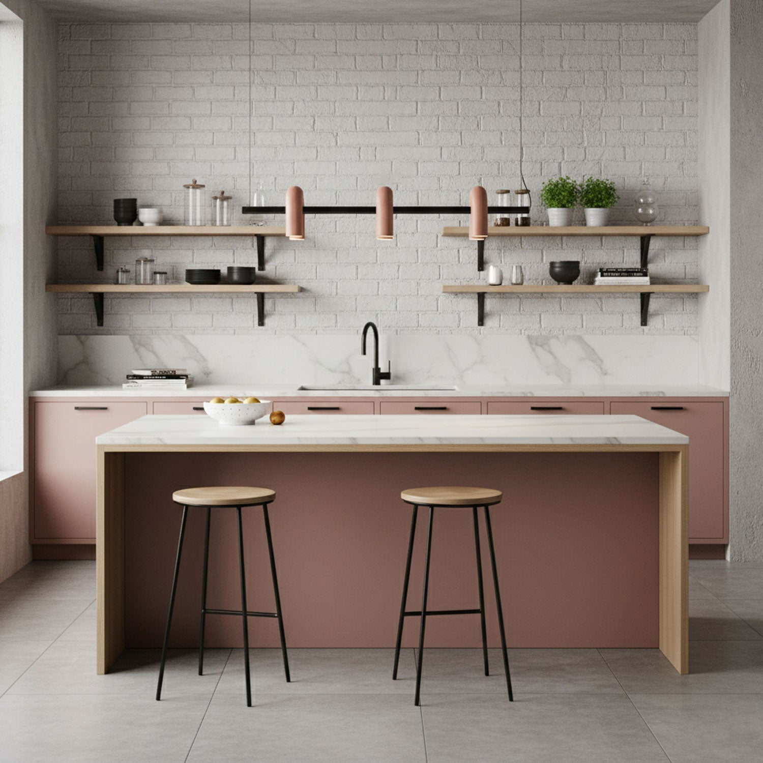Pendants Over Island: These provide crucial task lighting for food prep and should hang 32-36 inches above the surface. Make sure that each pendant is about 1/4 the length of the island to provide sufficient coverage without overwhelming the space.