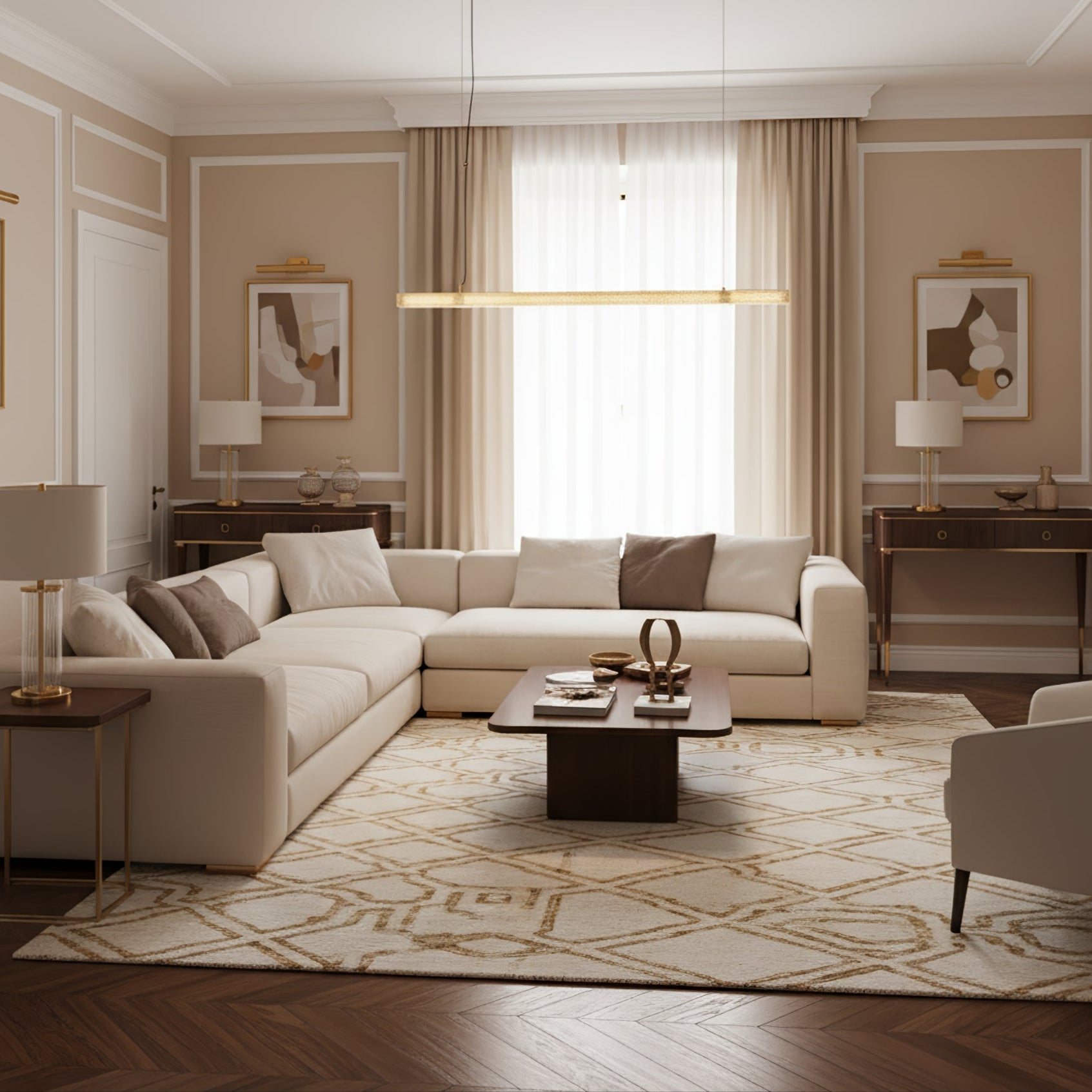 Task Lighting: Table and floor lamps add layers of light that are perfect for reading or highlighting specific areas of the room. Ensure that floor lamps are proportionate to the size of the furniture they accompany.