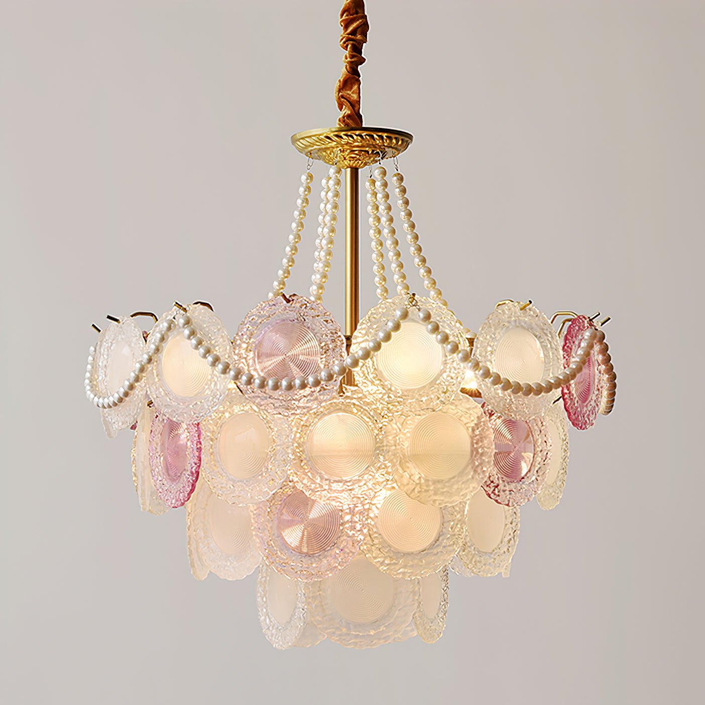 The Rainbow Chandelier adds a playful and sophisticated touch to any room. This branch-shaped chandelier is crafted from a mix of glass and metal, with a series of soft-hued glass discs encircled by delicate metal frames. The glass pieces are arranged in a layered pattern, reminiscent of soft petals or sweet candy, creating a mesmerizing visual effect when lit. Hanging from a pole enveloped in rope, this piece blends rustic charm with modern fashion, perfect for infusing gentle hues and a warm, inviting glow to your space.