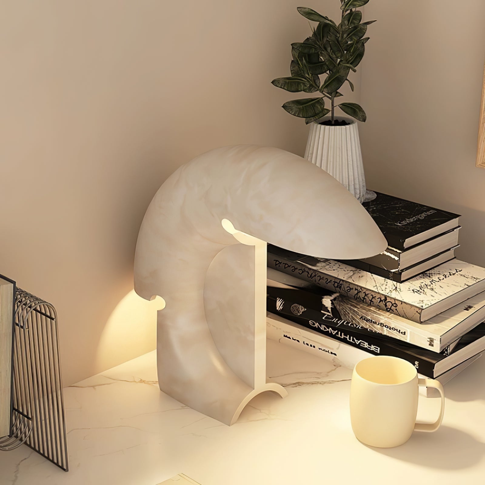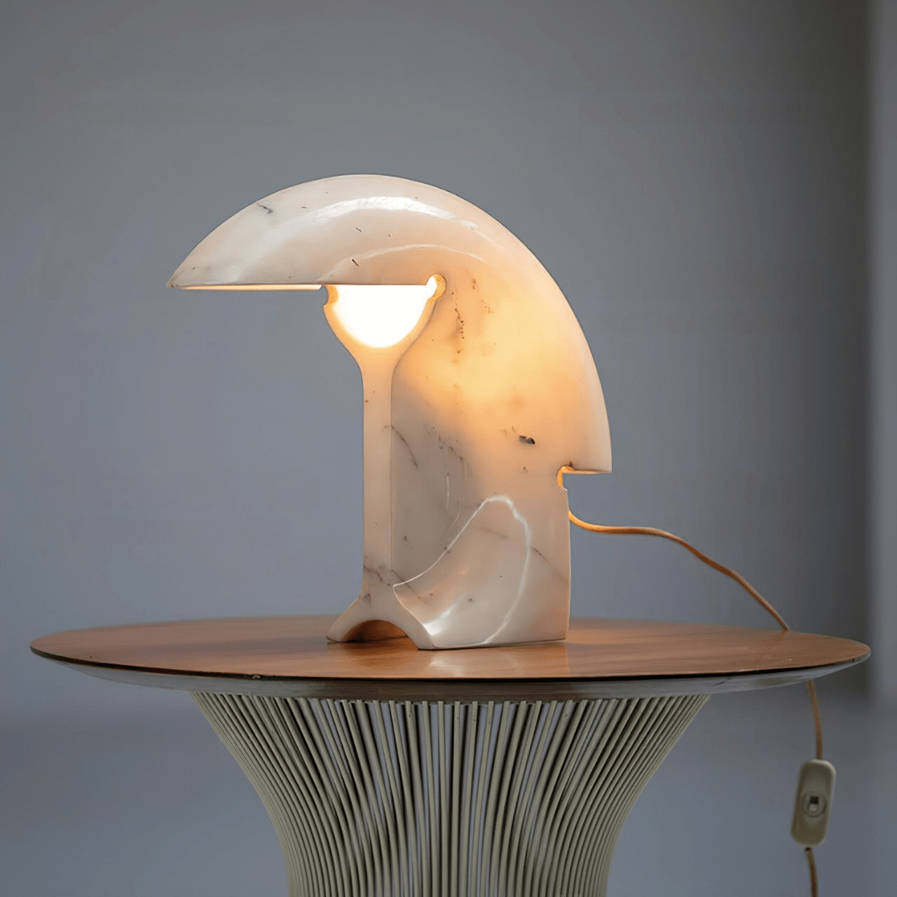 The Elios Marble Table Lamp blends natural elegance with a futuristic silhouette. Hand-carved from solid marble, its crescent-like form cradles the bulb in a soft, celestial curve—creating a luminous interplay between shadow and stone. Ideal for artful interiors, it stands as both lighting and sculpture.