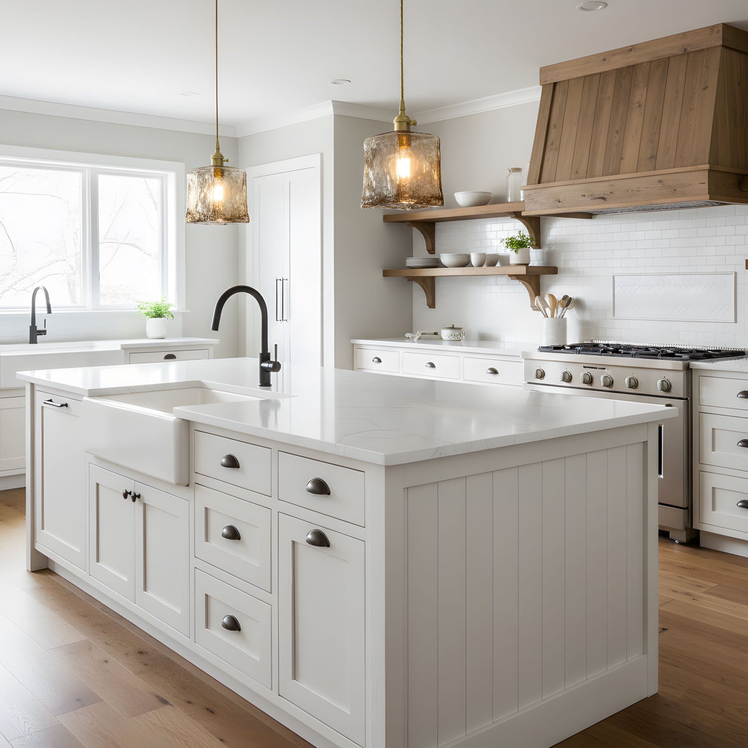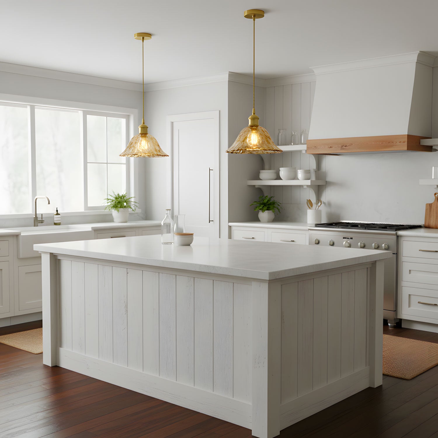 • Pendants Over Island: These provide crucial task lighting for food prep and should hang 32-36 inches above the surface. Make sure that each pendant is about 1/4 the length of the island to provide sufficient coverage without overwhelming the space.