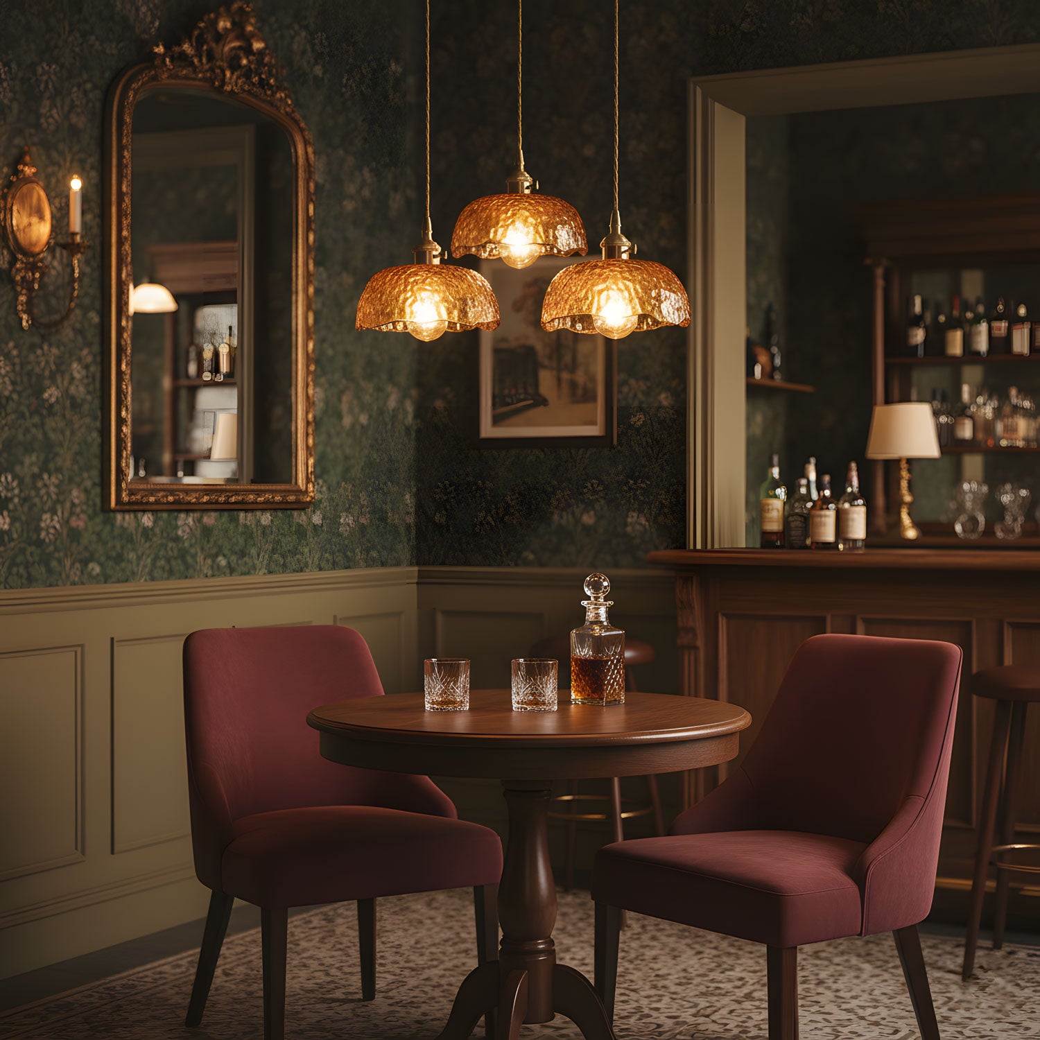 • Multiple Pendants: For long rectangular tables, two or three smaller pendants spaced evenly above the table create a balanced look.