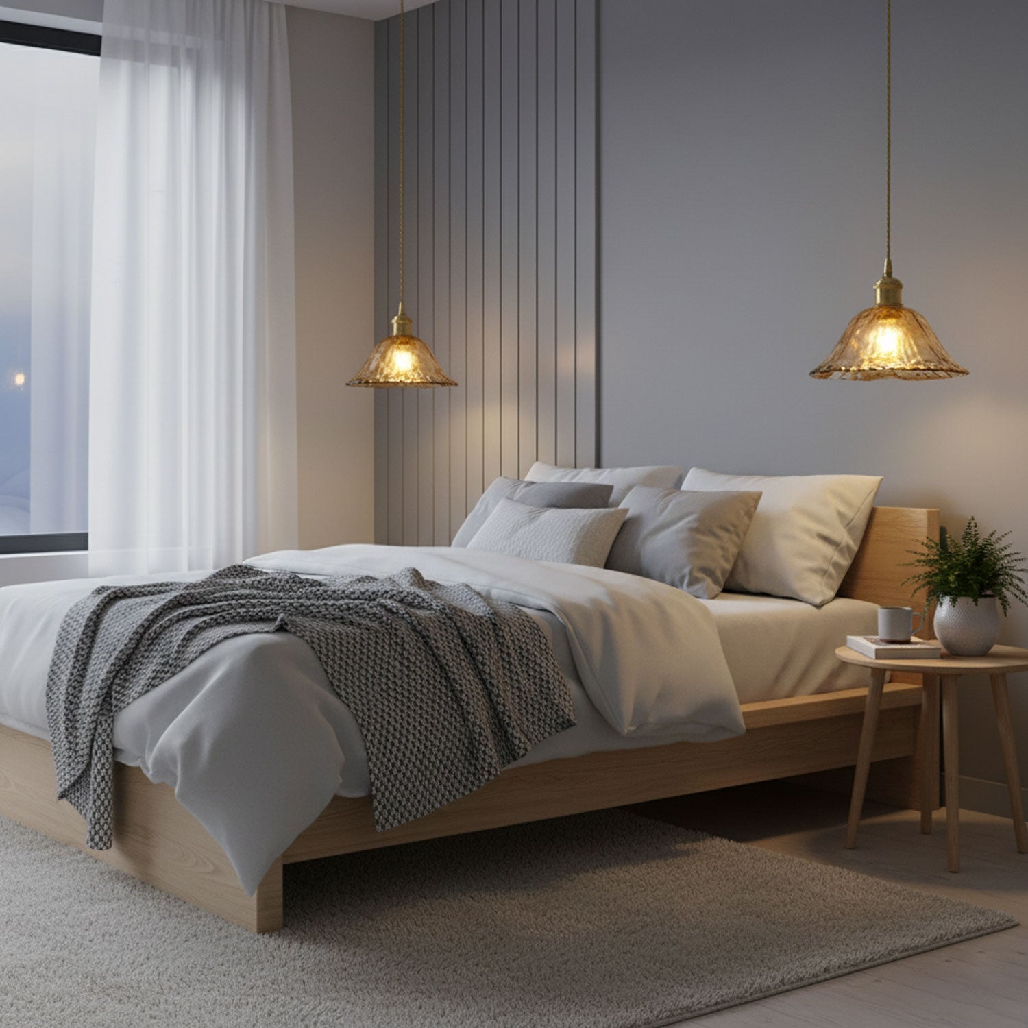 • Ceiling Fixtures: Bedrooms benefit from soft, ambient lighting. Use the room dimension formula to ensure the ceiling fixture is properly scaled. Semi-flush or flush mounts work well for general lighting, while sconces or bedside lamps provide focused task lighting.