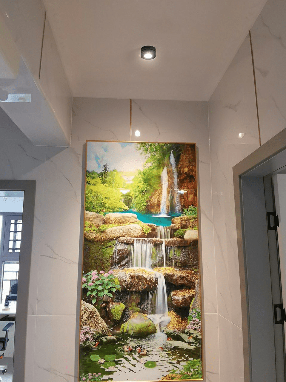 Hallway Lighting: Recessed or flush mount lights spaced evenly (every 8-10 feet) create a well-lit and inviting space.