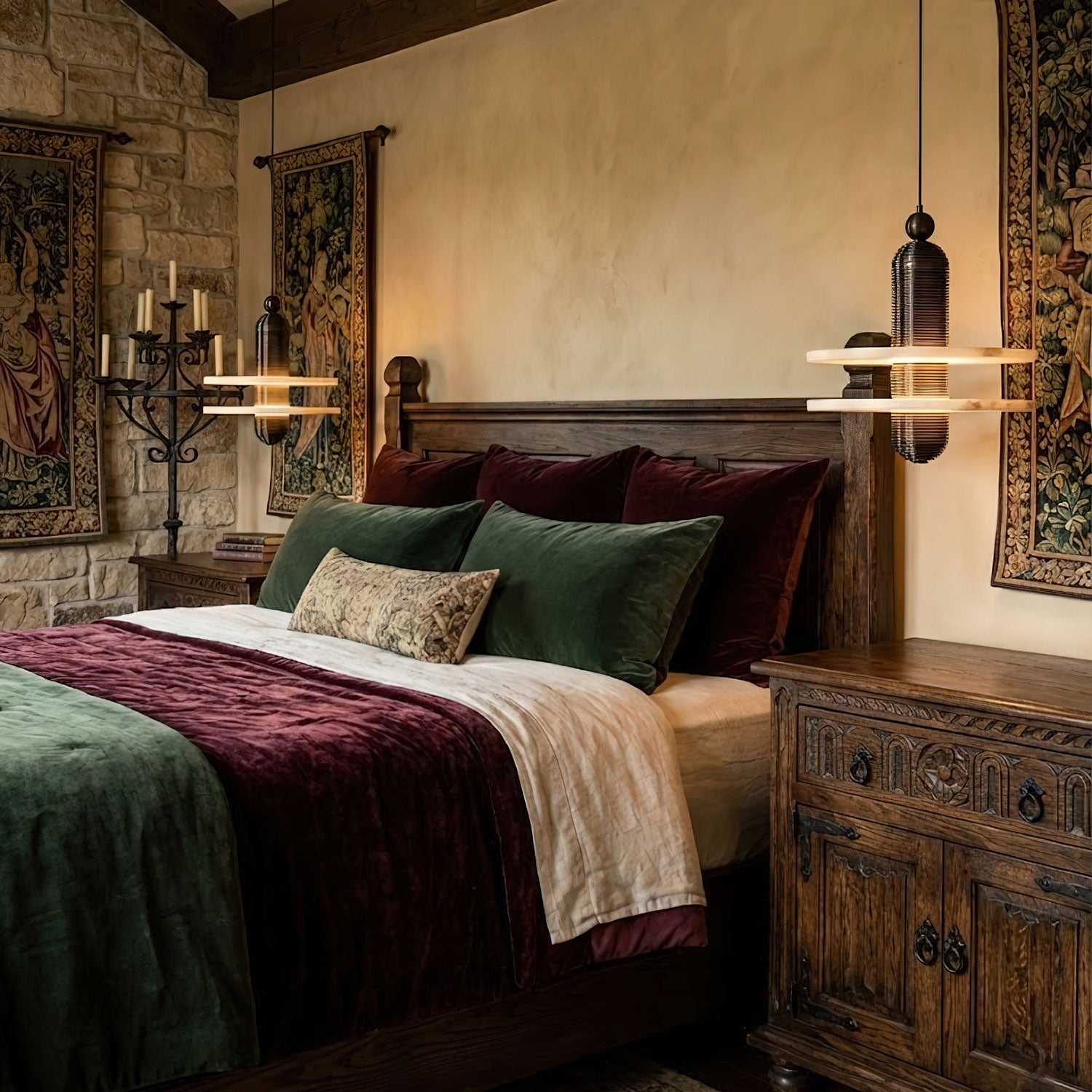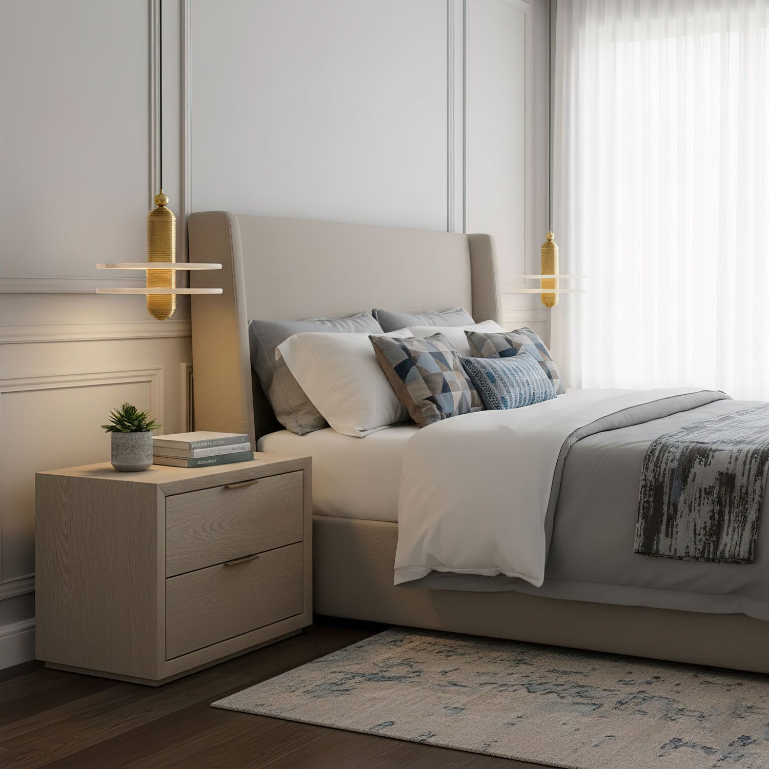 Ceiling Fixtures: Bedrooms benefit from soft, ambient lighting. Use the room dimension formula to ensure the ceiling fixture is properly scaled. Semi-flush or flush mounts work well for general lighting, while sconces or bedside lamps provide focused task lighting.