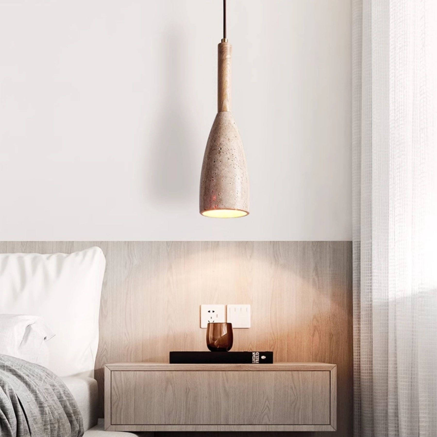 This pendant light features a teardrop-shaped shade crafted from travertine, highlighting the stone’s natural, earthy texture and warm tones. Accented with a wooden or wood-like connector and suspended by a cord, it emits a soft, ambient glow. Blending the raw, organic charm of travertine with natural materials, this piece adds a refined, artistic touch to dining areas, kitchen islands, or living spaces — merging timeless stone beauty with modern elegance.