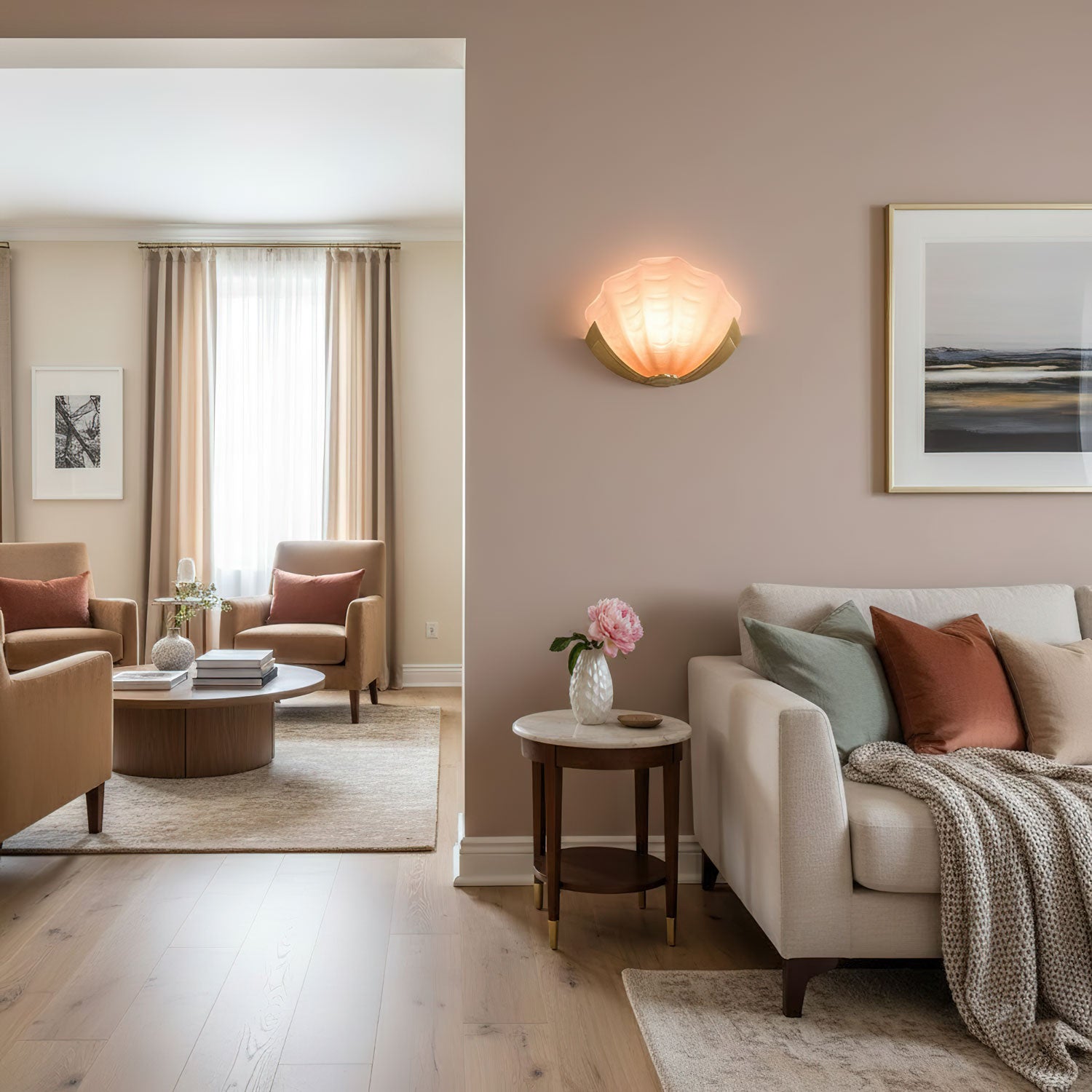 Introduce a wave of Art Deco glamour to your interiors with this exceptional wall light. Inspired by the sophisticated lines of the 1920s and the organic beauty of the ocean, the shade is meticulously crafted from a Molded, Seafoam Green Frosted Glass. The intricate scalloped and fluted texture not only replicates the delicate form of a shell but also ensures a beautifully diffused, soft ambient light.