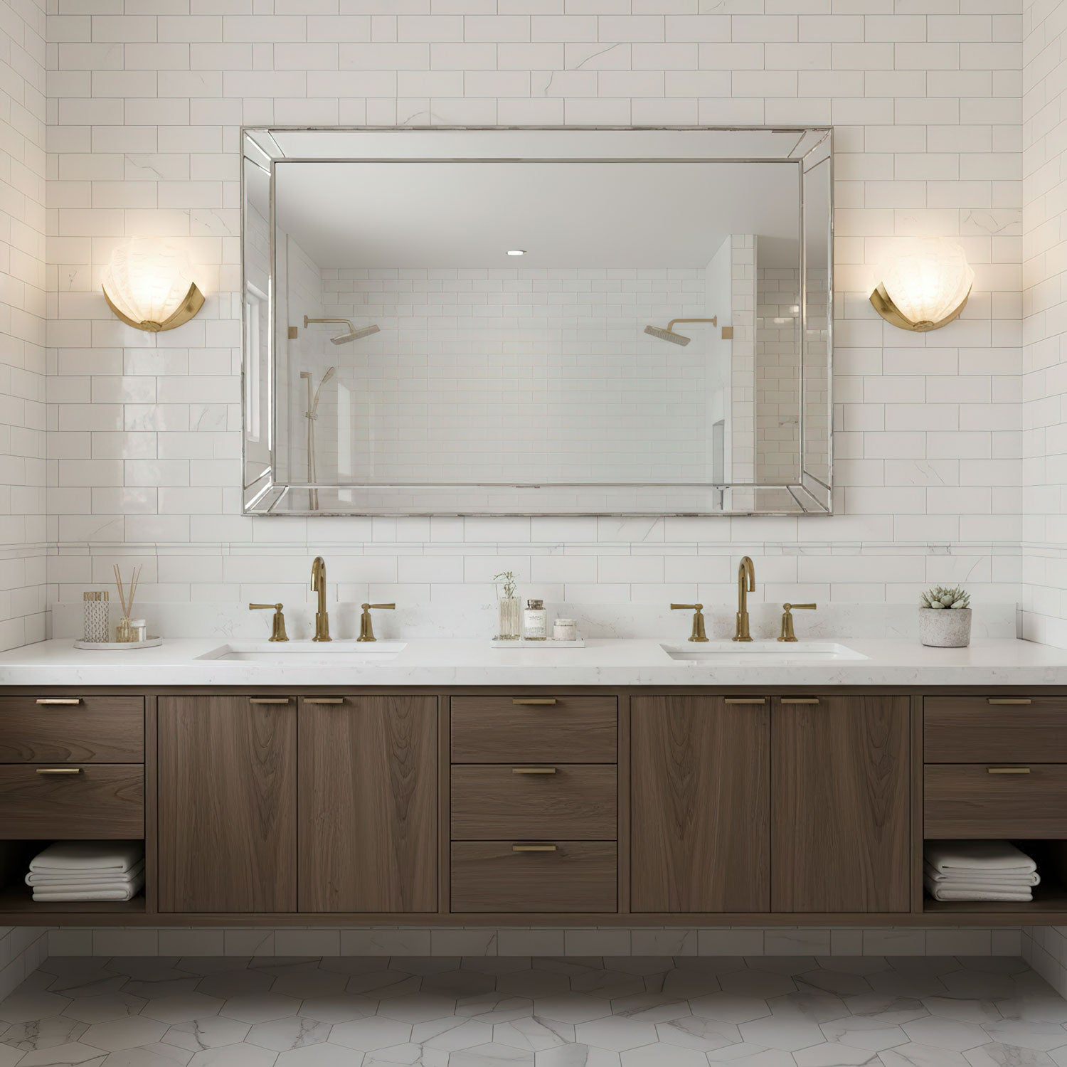 Vanity Lighting: For task lighting, place sconces on either side of the vanity mirror to minimize shadows. These should be mounted 65-70 inches from the floor, and spaced appropriately for even lighting.
