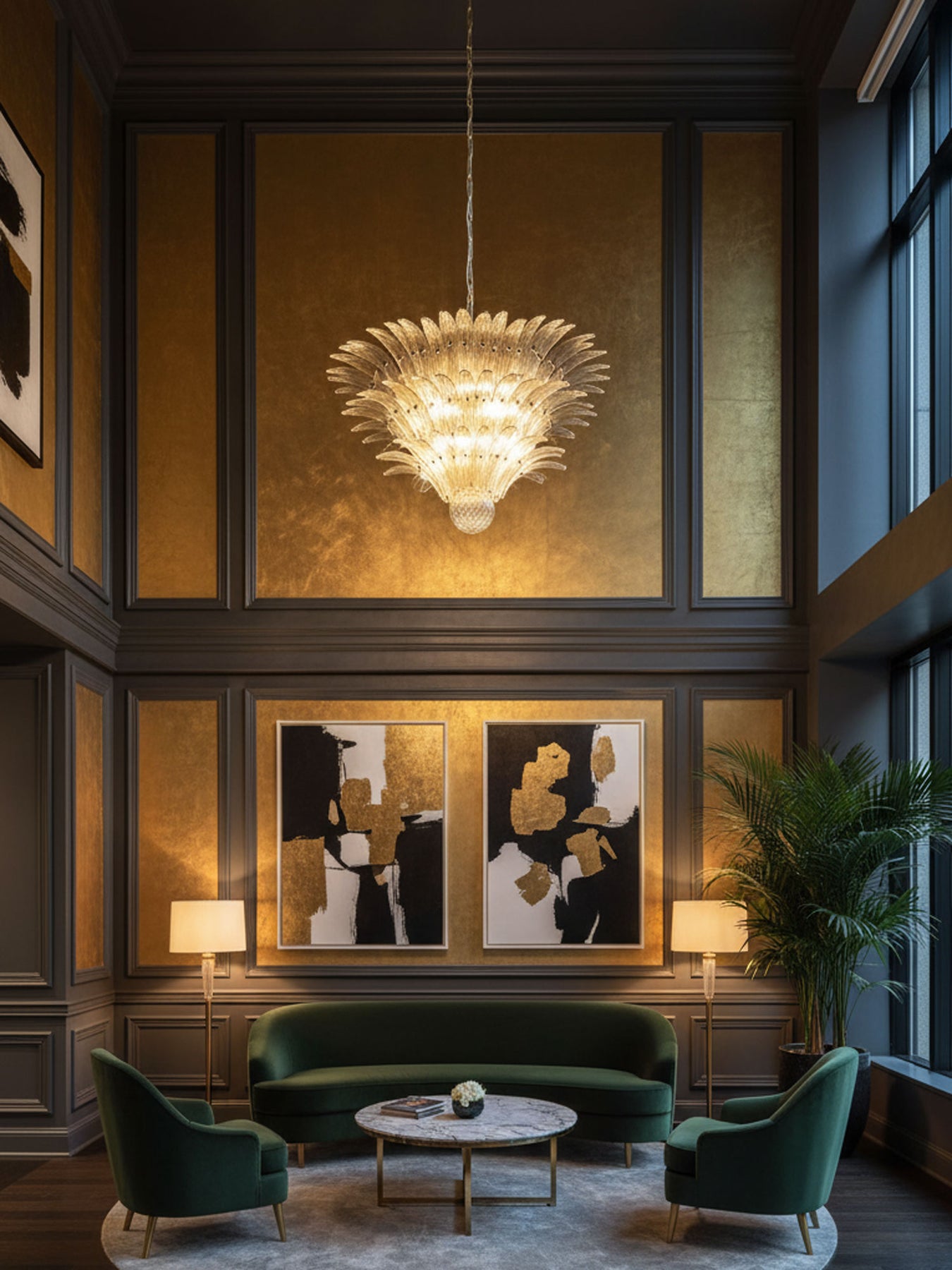 Standard Ceilings (9-10 feet): Chandeliers and pendant lights are ideal for rooms with standard ceiling heights, especially in dining rooms and entryways. Ensure the bottom of the fixture hangs at least 7 feet from the floor.