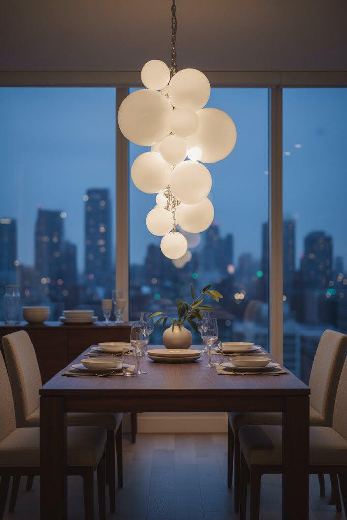 - Multiple Pendants: For long rectangular tables, two or three smaller pendants spaced evenly above the table create a balanced look.