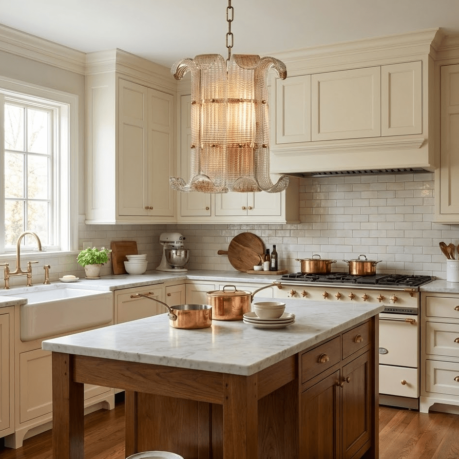 Pendants Over Island: These provide crucial task lighting for food prep and should hang 32-36 inches above the surface. Make sure that each pendant is about 1/4 the length of the island to provide sufficient coverage without overwhelming the space.