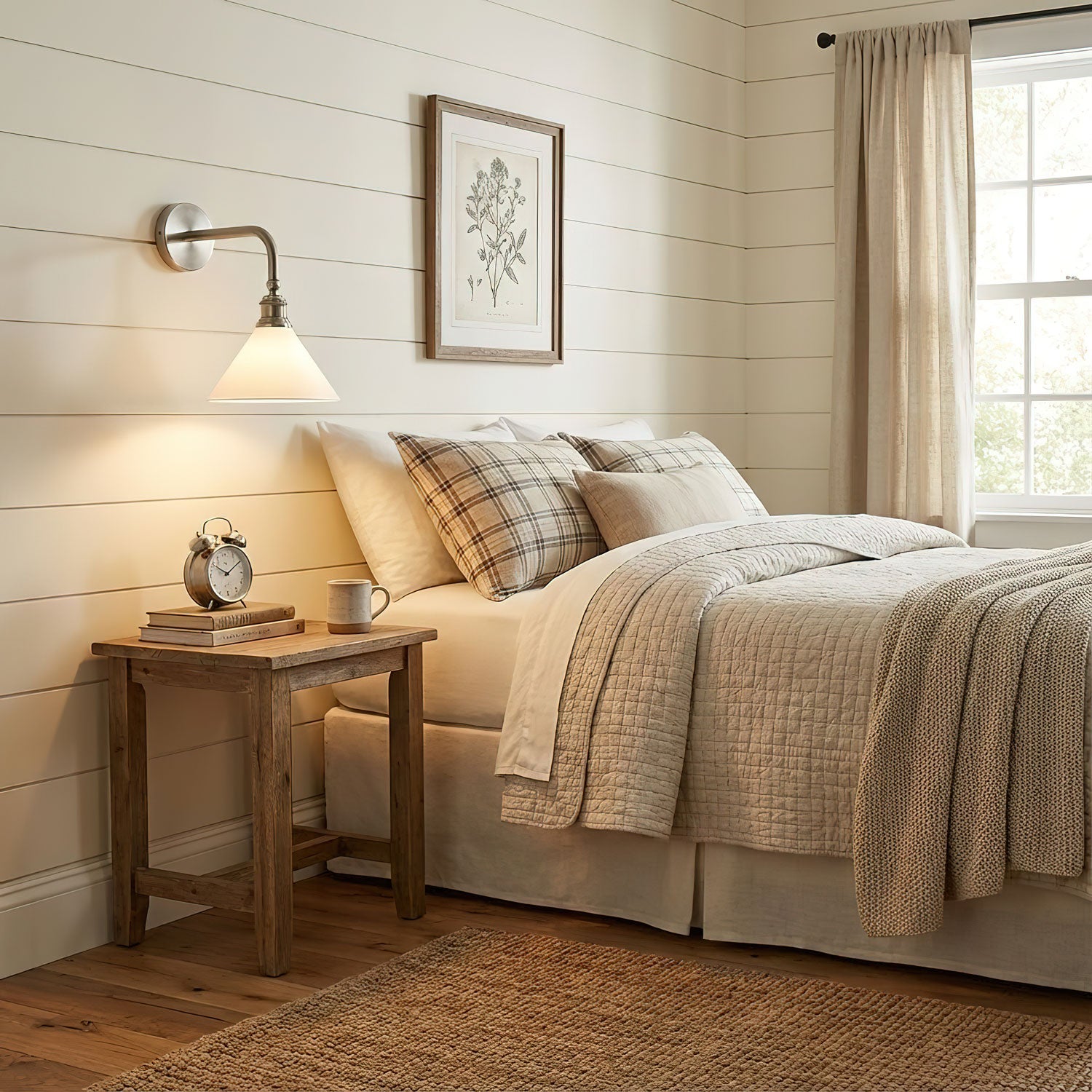 • Ceiling Fixtures: Bedrooms benefit from soft, ambient lighting. Use the room dimension formula to ensure the ceiling fixture is properly scaled. Semi-flush or flush mounts work well for general lighting, while sconces or bedside lamps provide focused task lighting.