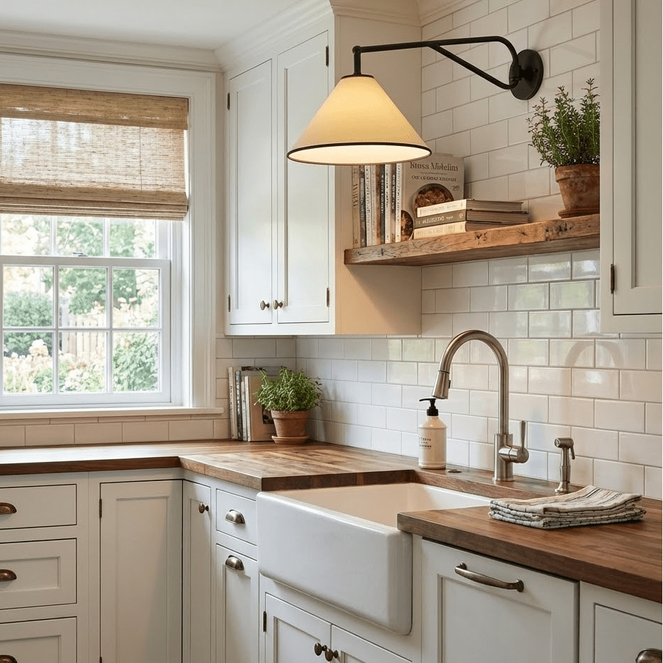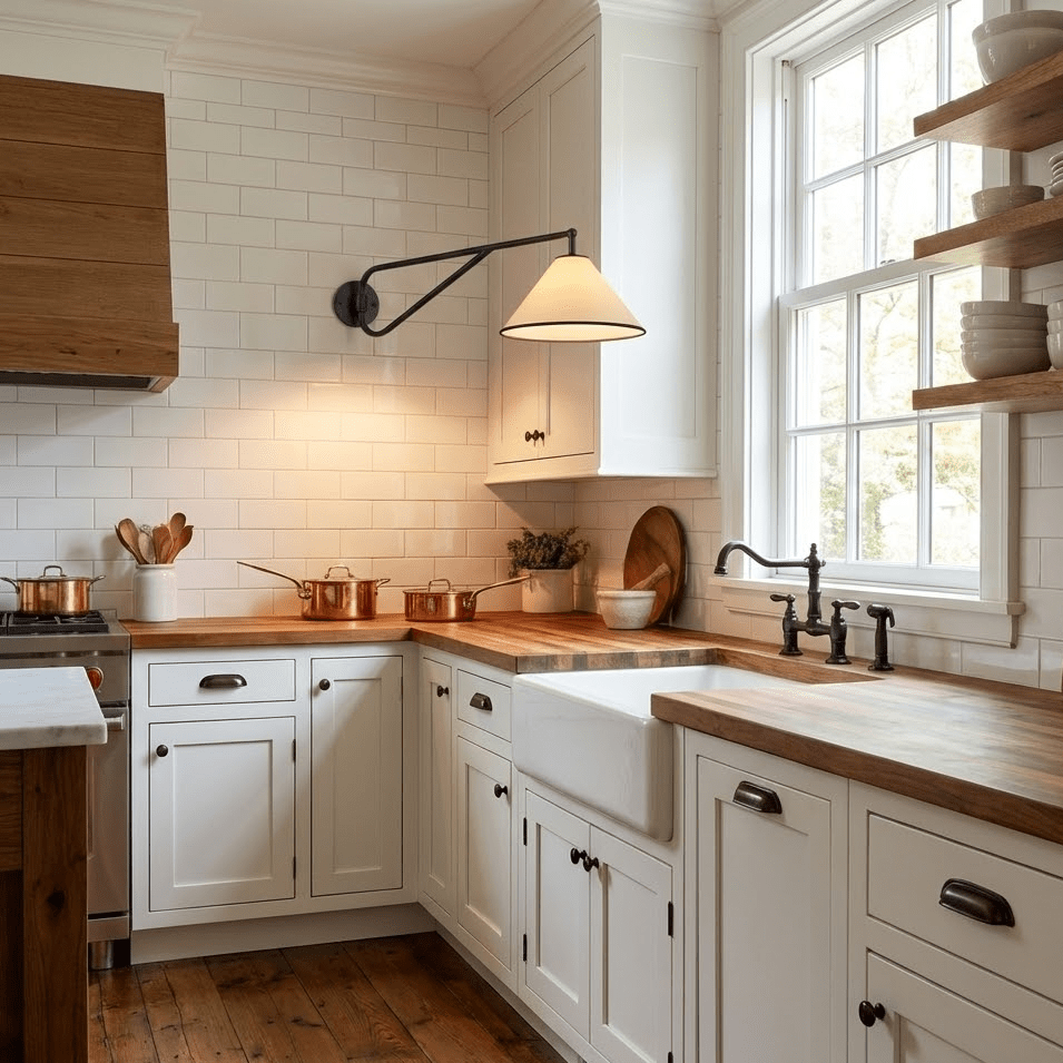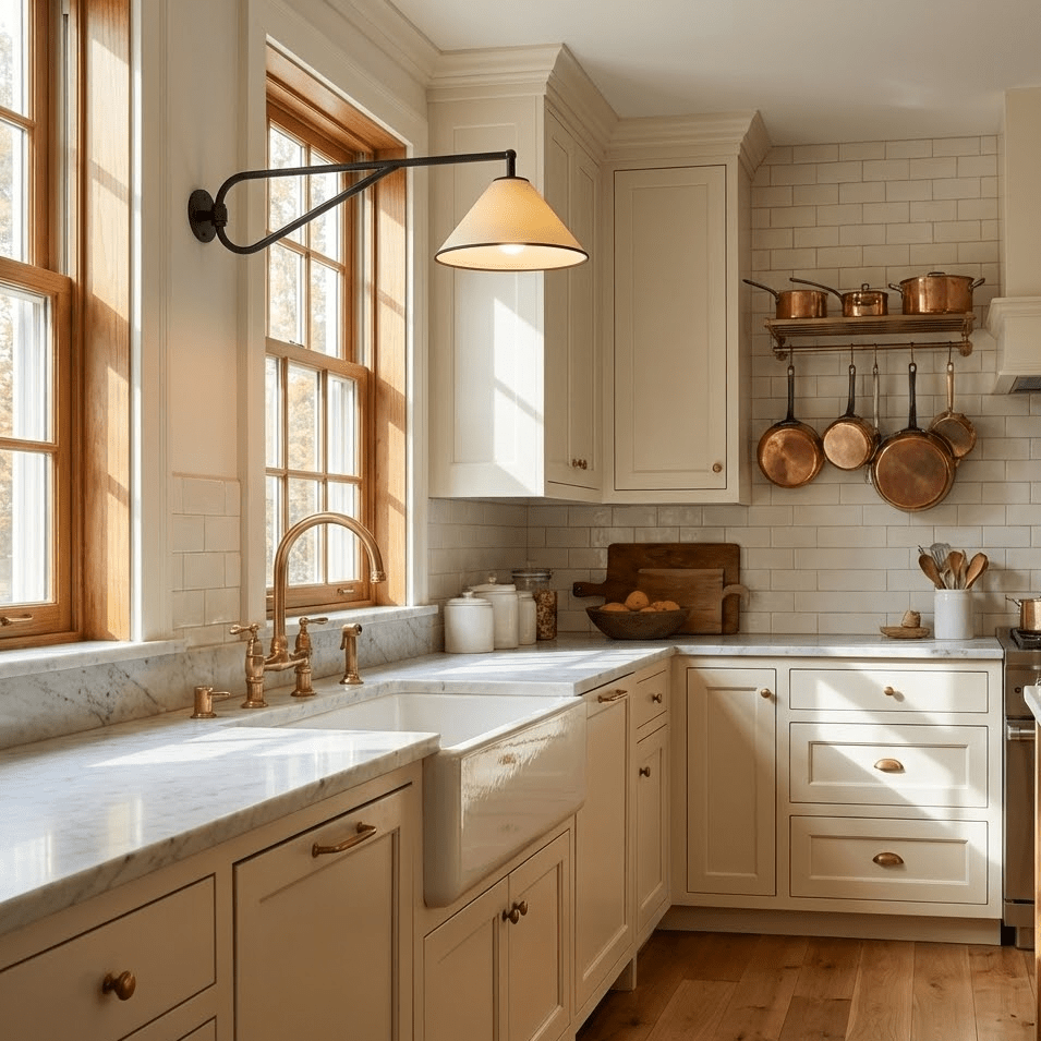 Pendants Over Island: These provide crucial task lighting for food prep and should hang 32-36 inches above the surface. Make sure that each pendant is about 1/4 the length of the island to provide sufficient coverage without overwhelming the space.
