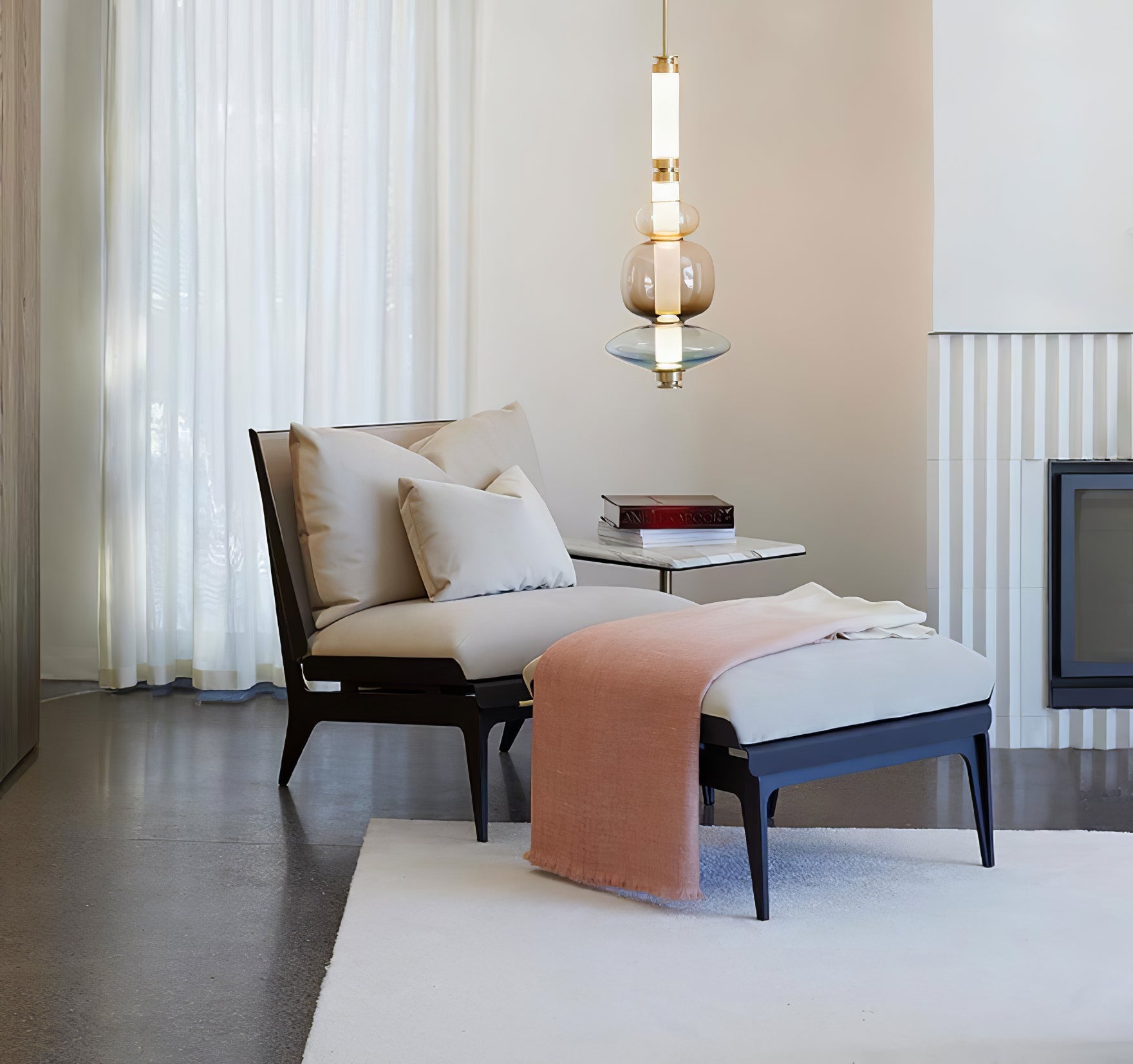Chandeliers and Pendants: These are the focal points of the living room, especially in rooms with higher ceilings. To size appropriately, use the room dimension formula and ensure the fixture is in scale with the room’s layout. A general rule is to ensure there is at least 7 feet of clearance between the fixture and the floor.