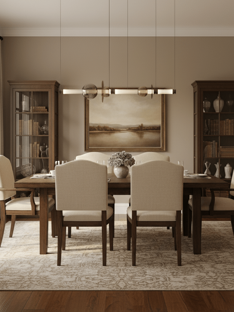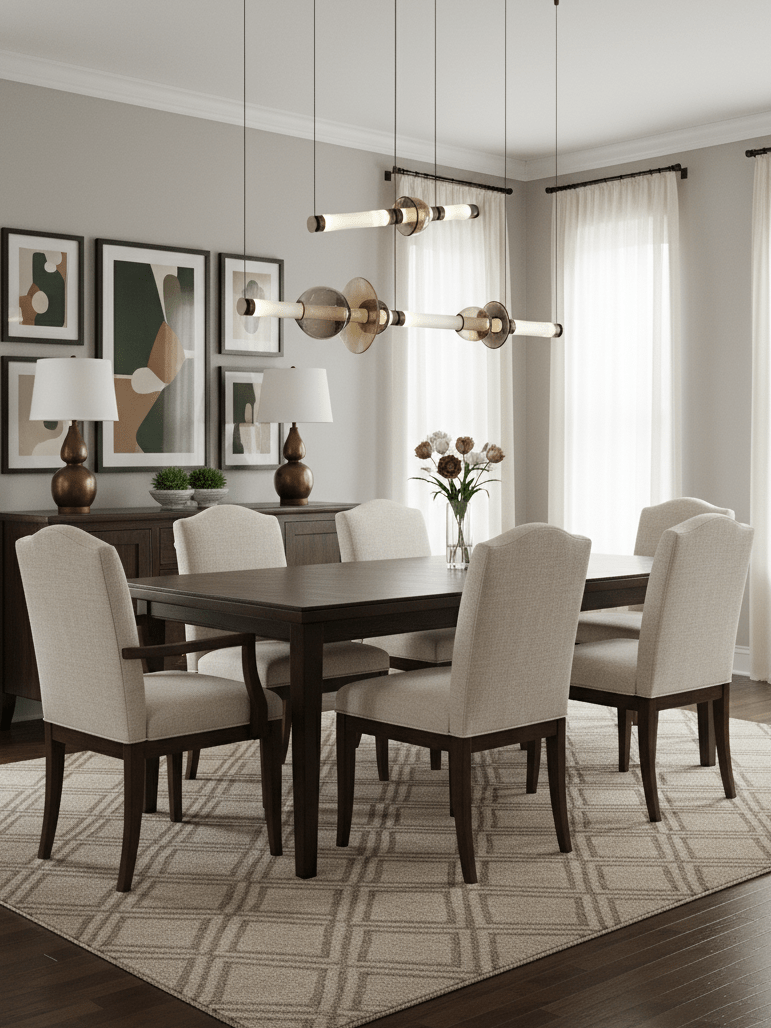 - Multiple Pendants: For long rectangular tables, two or three smaller pendants spaced evenly above the table create a balanced look.