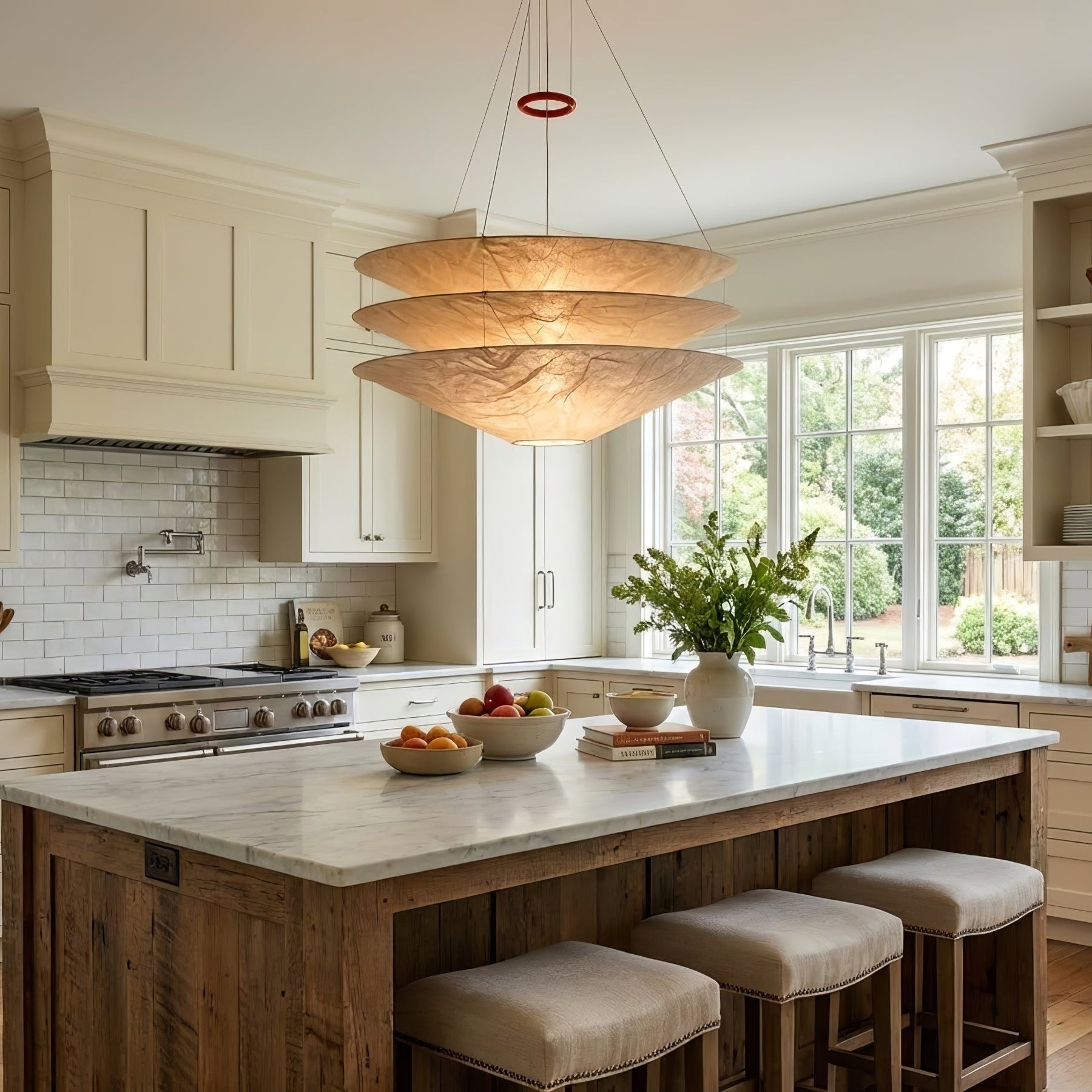 - Multiple Pendants: For long rectangular tables, two or three smaller pendants spaced evenly above the table create a balanced look.
