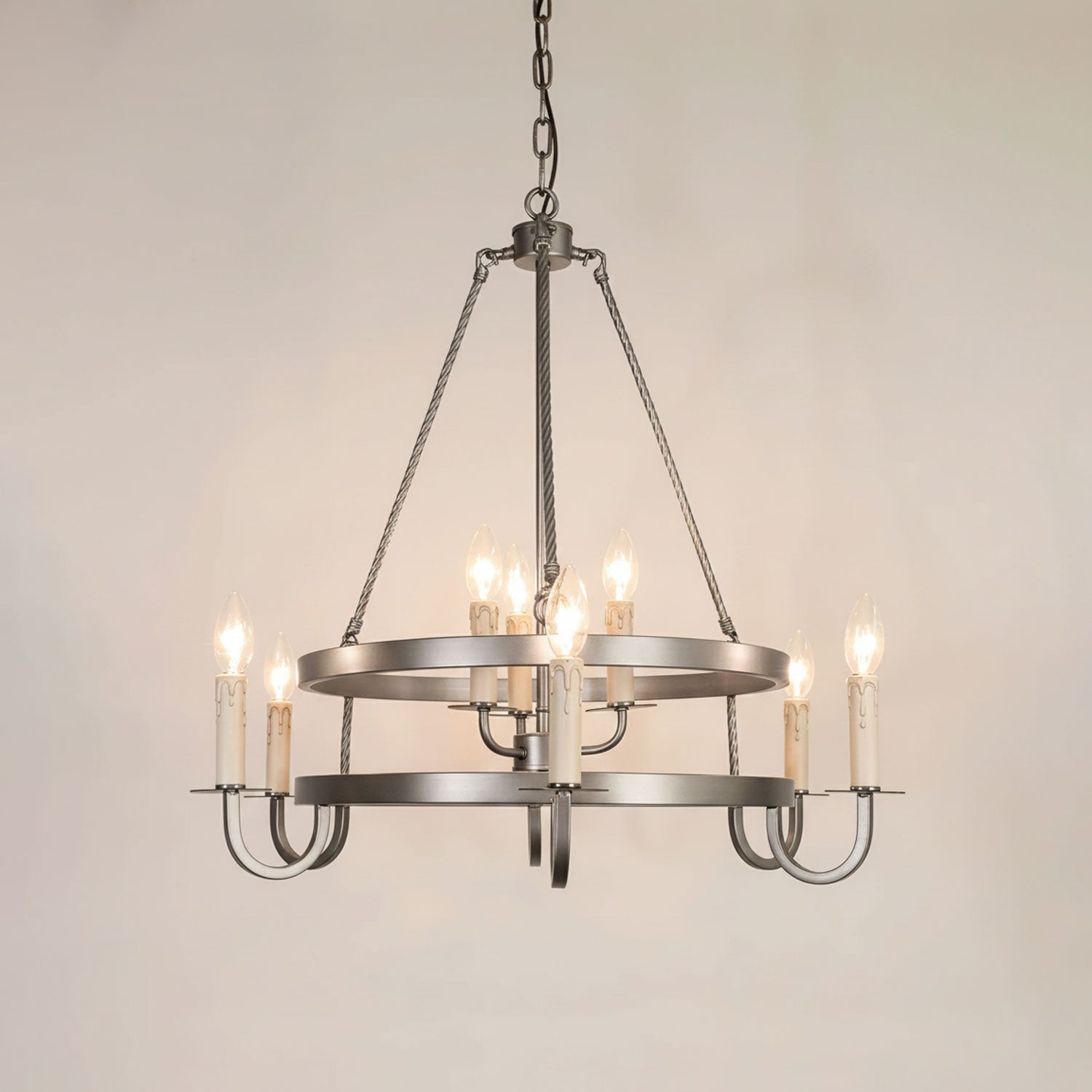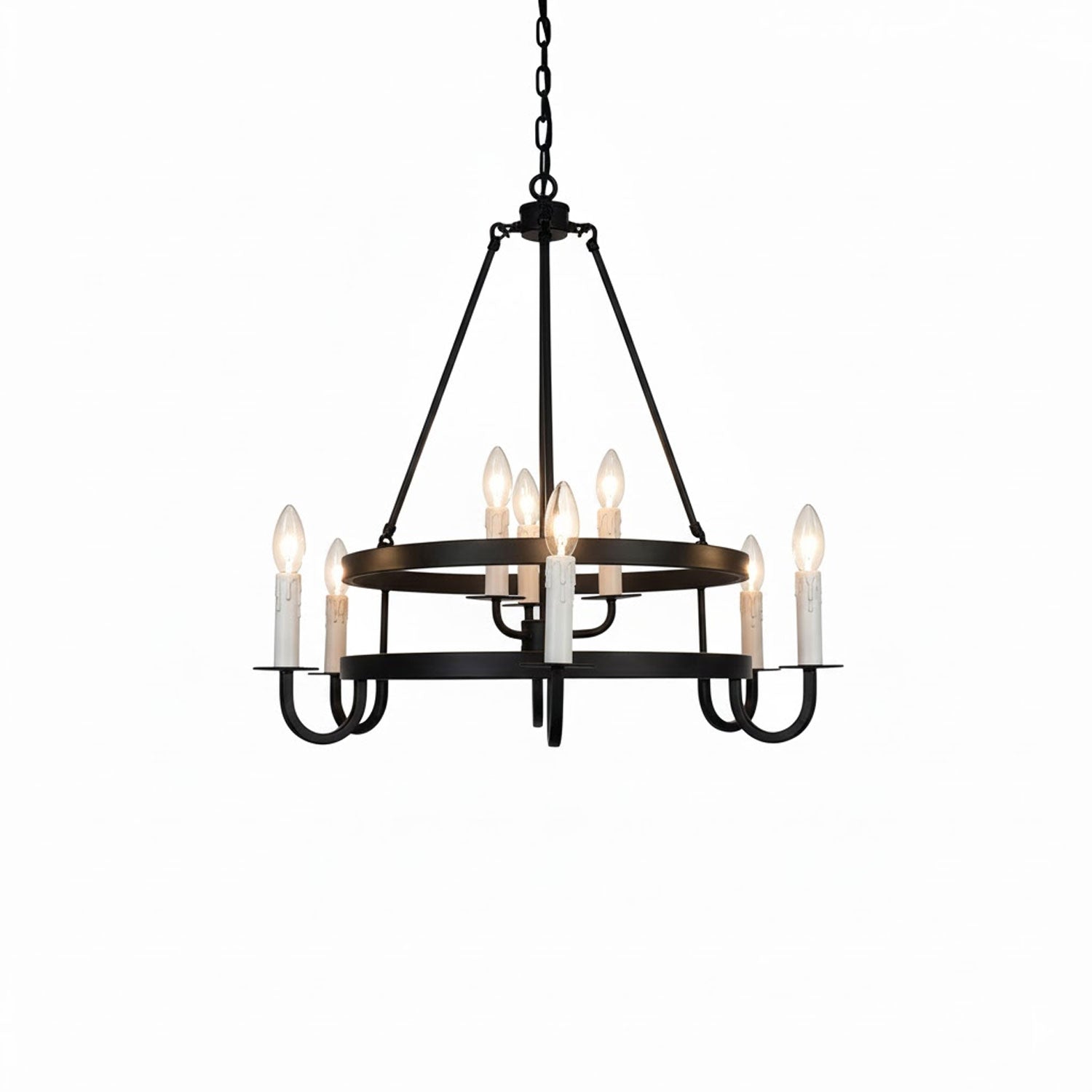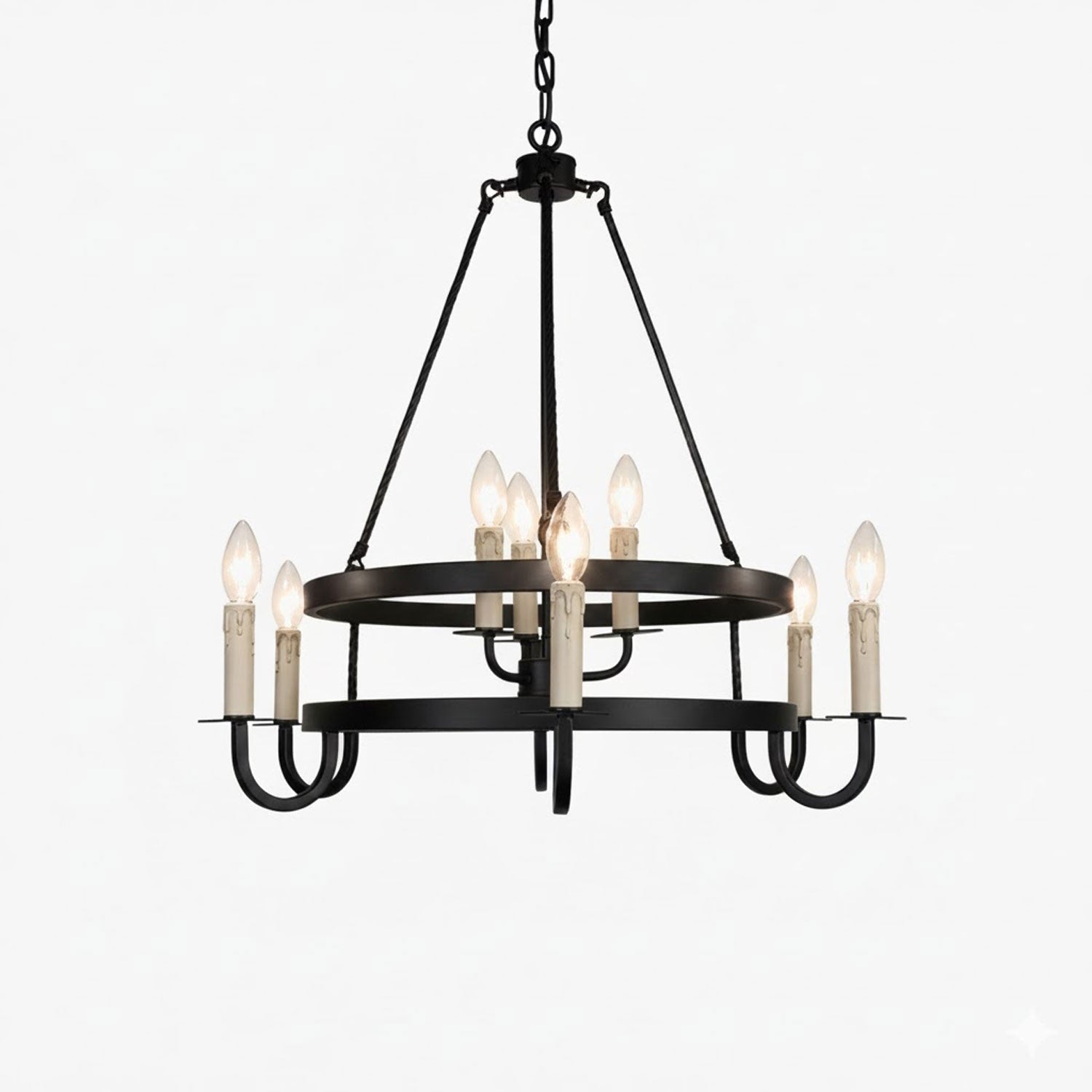 Introducing our Vintage Voyager Chandelier - the perfect fusion of tradition and modernity. The rough industrial aesthetic, circular layout, and warm lighting make it a perfect addition to any interior space. With its metal structure and retro chain suspension, it brings a touch of history and warmth to any room.
