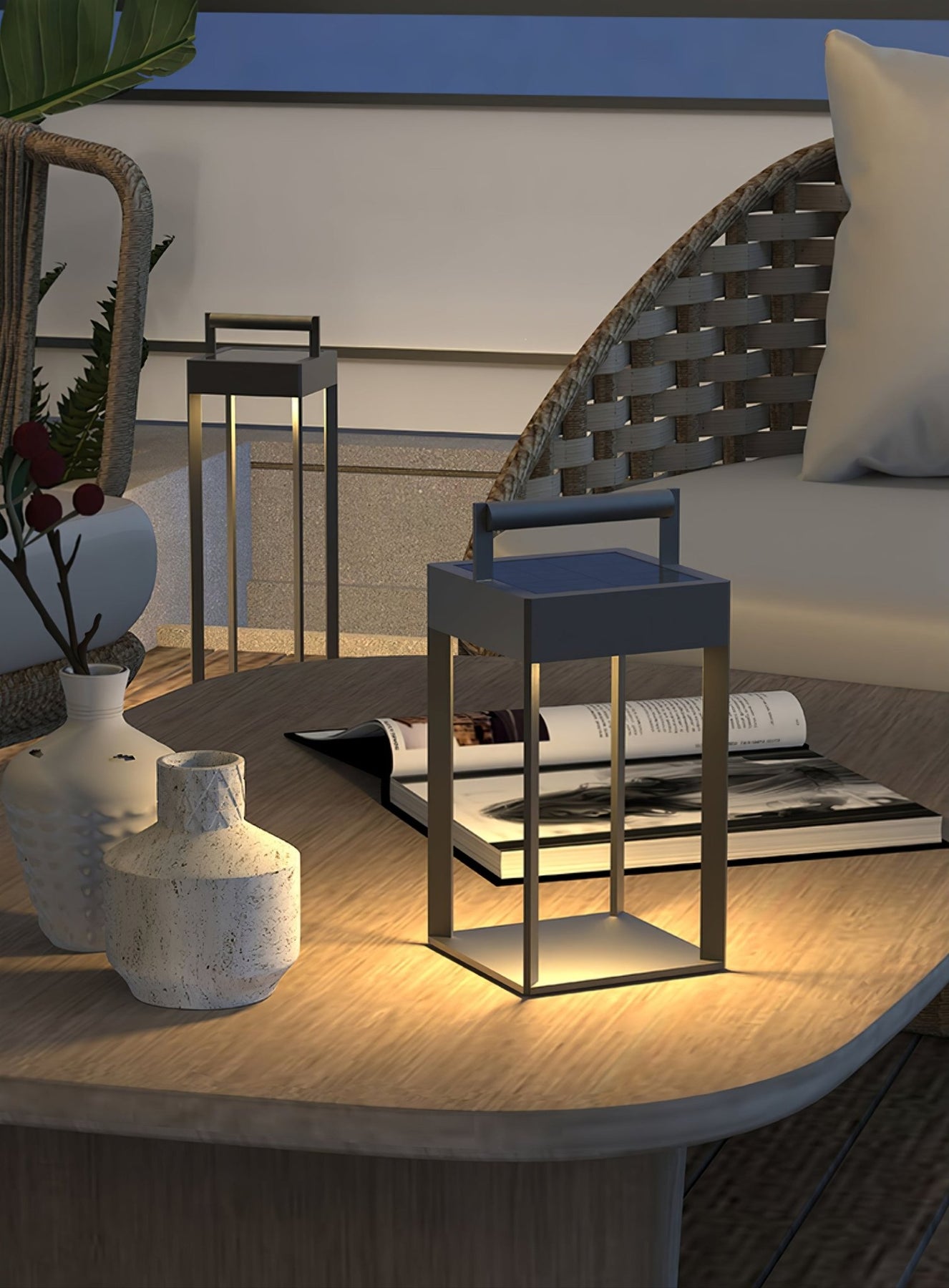 Modern minimalism meets functional elegance in the Arden Solar Lantern Outdoor Lamp by Vakkerlight. Crafted with clean lines and a sleek matte finish, this lantern features a built-in solar panel and soft ambient lighting—perfect for patios, gardens, or any alfresco setting. Its geometric frame doubles as a sculptural statement, while the handle adds portability for seamless outdoor living.