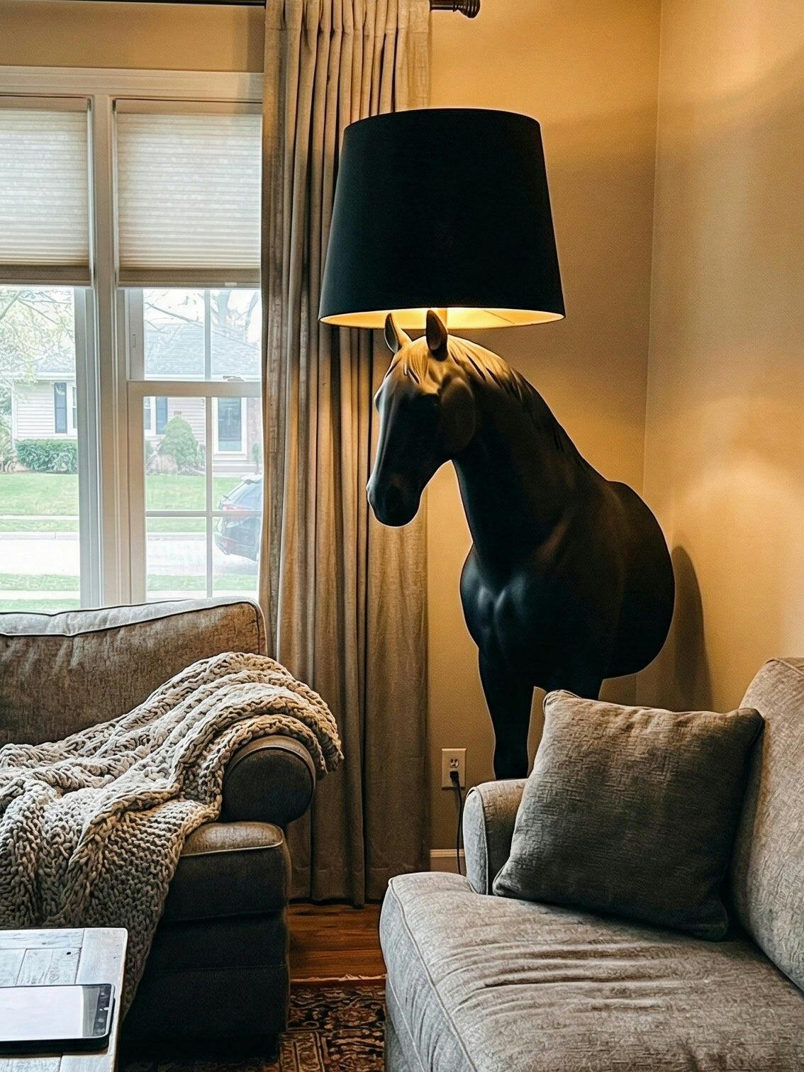Illuminate your space with equine elegance! Our Resin Floor Lamp Horse Statue features a majestic horse's head, crafted from high-quality resin, with a warm and inviting glow. Standing tall and proud, this unique lamp adds a touch of wild beauty and sophistication to any room, perfect for horse lovers and design enthusiasts.
