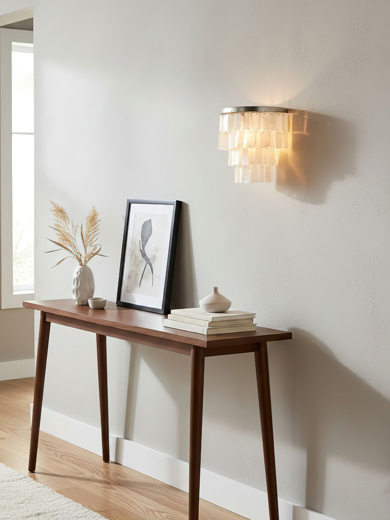 Chandeliers: The entryway is the perfect spot for a statement chandelier. Use the length + width formula to determine the diameter, and ensure the fixture hangs at least 7 feet from the floor to allow clearance.