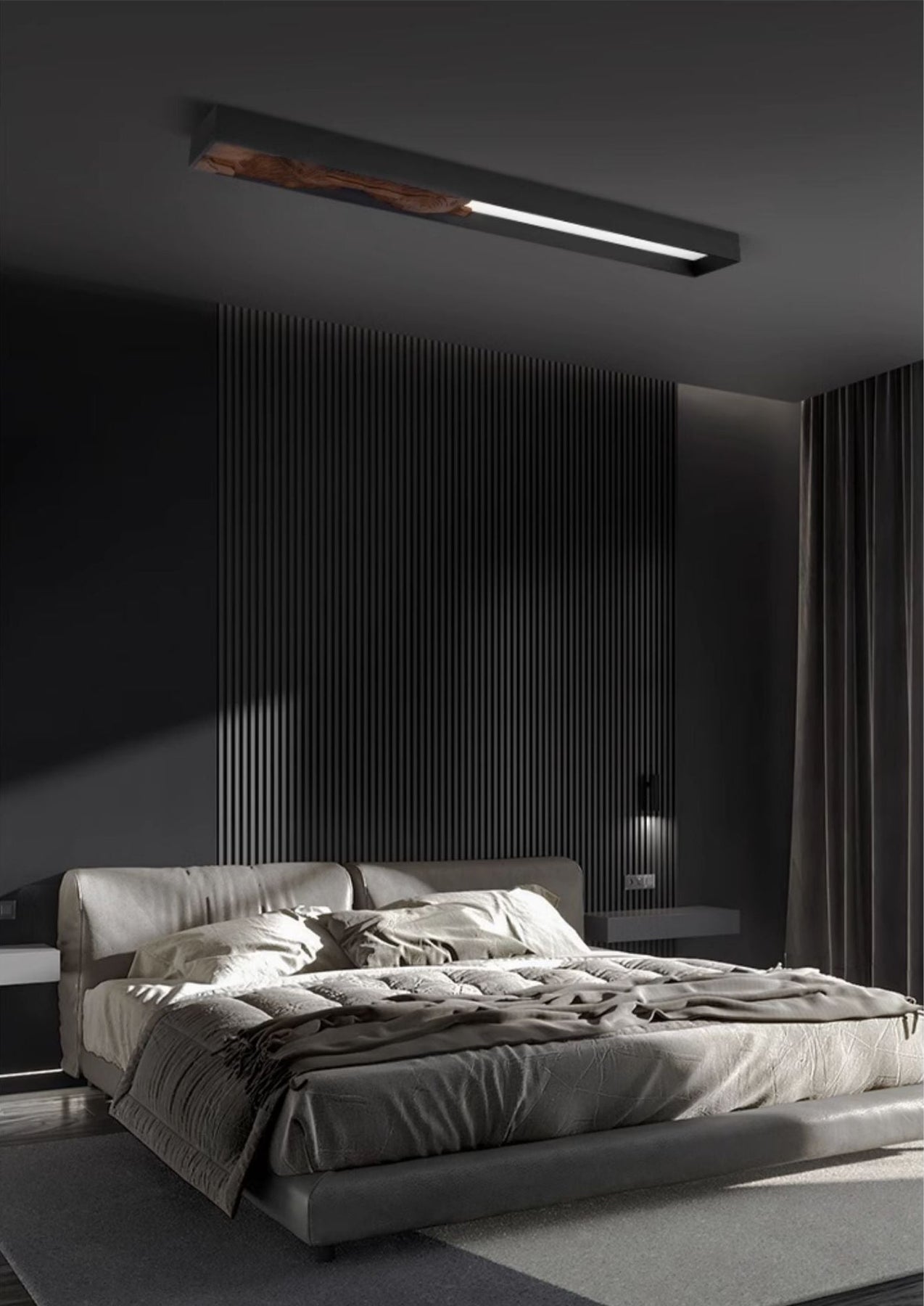 Ceiling Fixtures: Bedrooms benefit from soft, ambient lighting. Use the room dimension formula to ensure the ceiling fixture is properly scaled. Semi-flush or flush mounts work well for general lighting, while sconces or bedside lamps provide focused task lighting.