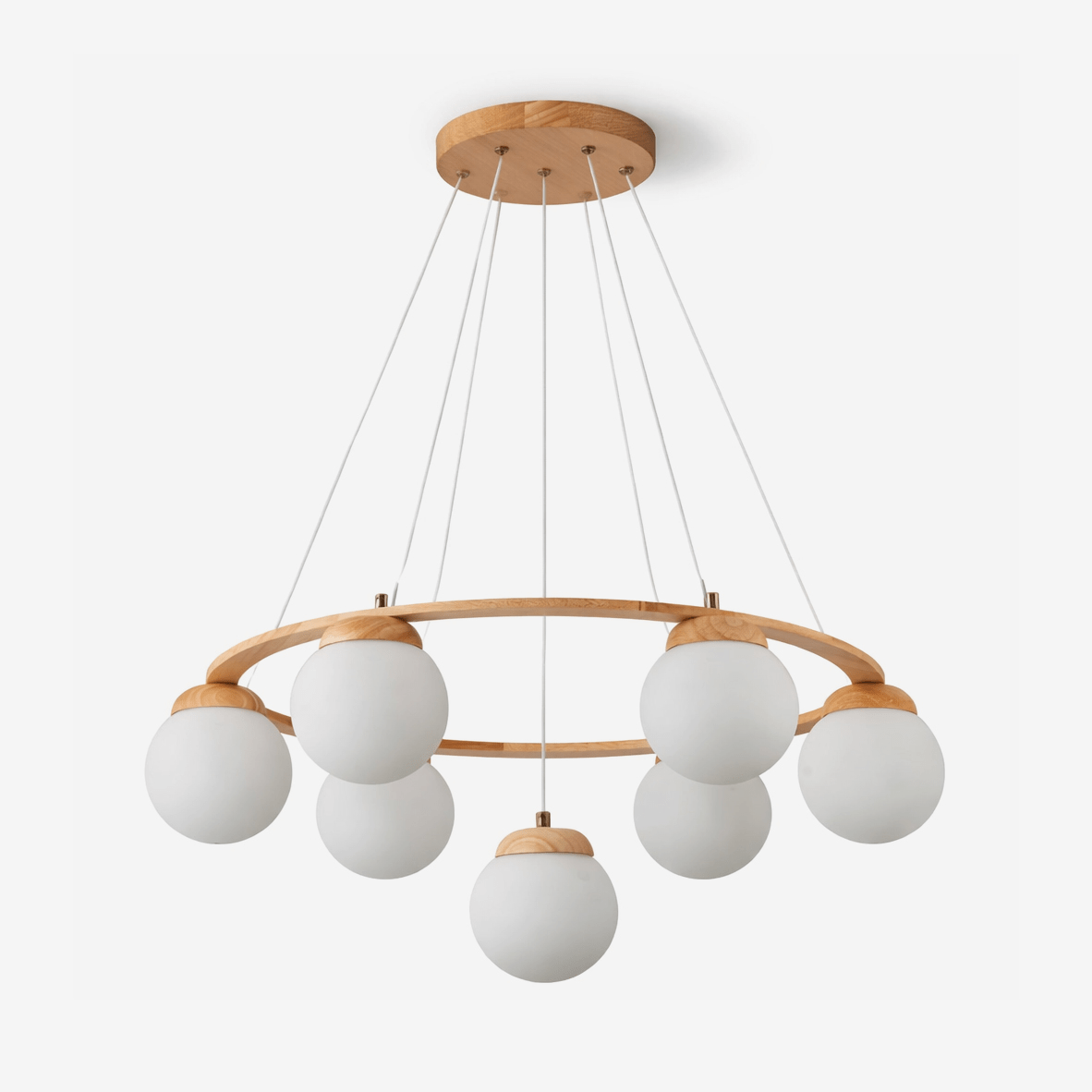 Crafted from wood and glass, the Miira Wood Chandelier features a sleek and lightweight design that is popular among young adults seeking a modern and minimalist look for their indoor decor. Its smooth surface and minimalist appearance make it a great fit for dining rooms and living rooms alike.