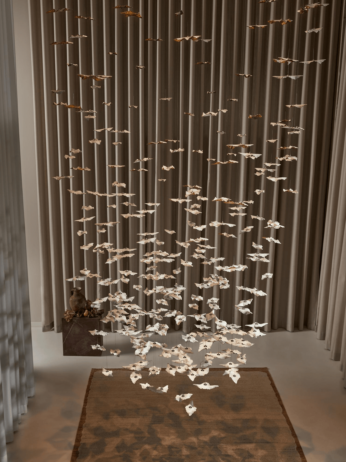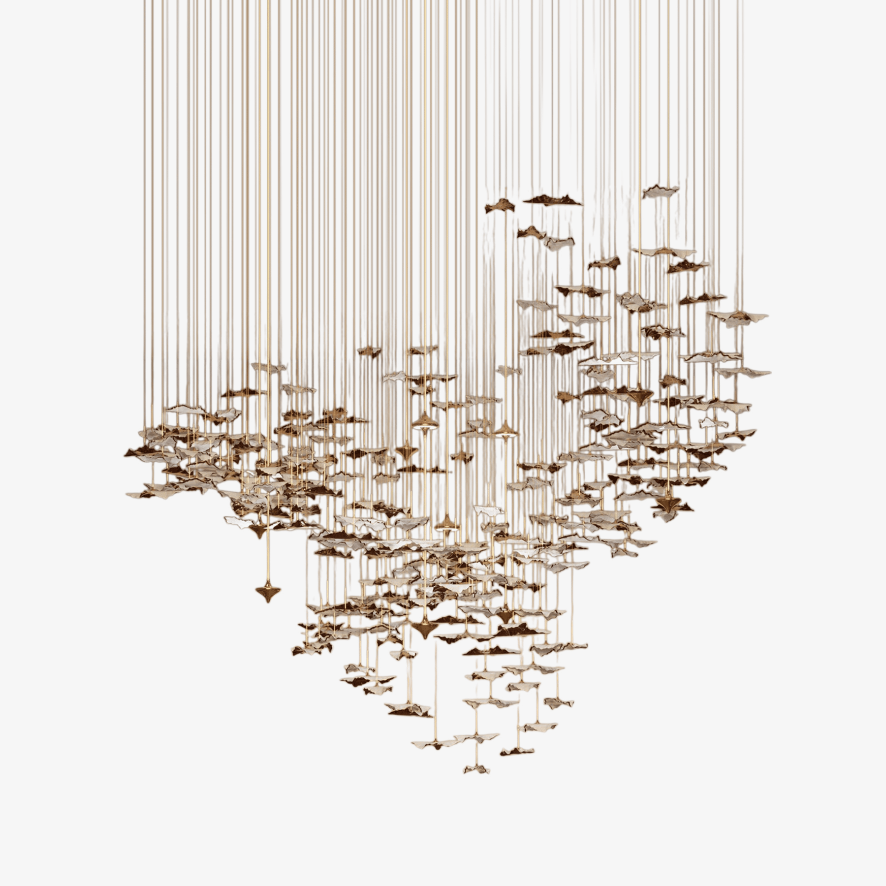 The Leaf Twisted Sculptural Chandelier by Vakkerlight is a striking artistic statement, featuring hundreds of delicately crafted glass leaves suspended in a sweeping, organic formation. Each leaf is twisted to catch light from different angles, creating a dynamic play of reflection and shadow. The result is a stunning display of nature-inspired elegance, ideal for high-ceiling interiors.