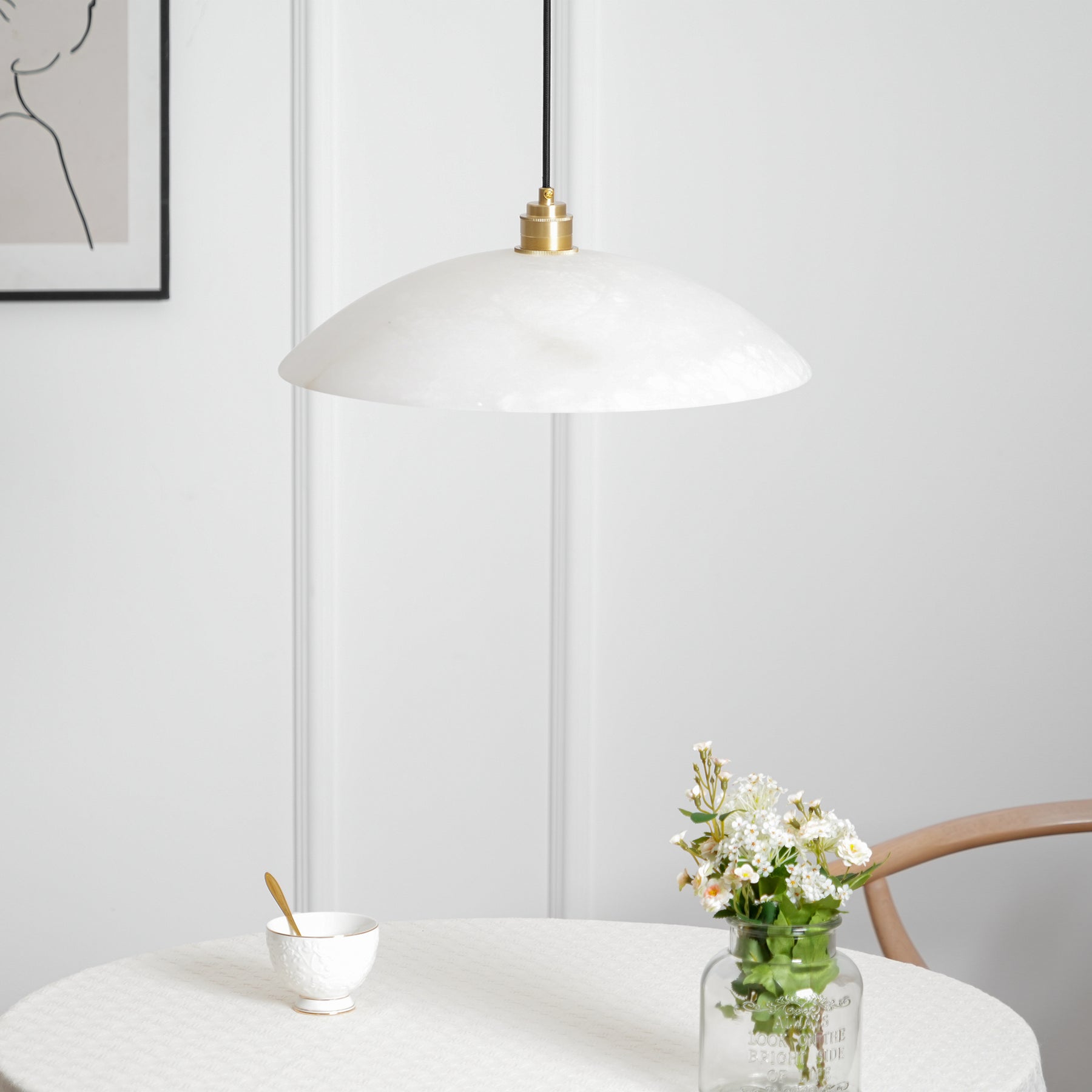 Enhance your space with the Alabaster Dome Pendant Lamp from Vakkerlight. This elegant fixture features a smooth alabaster dome that diffuses light beautifully, creating a warm and inviting atmosphere. The sophisticated design and high-quality craftsmanship make it perfect for kitchens, dining areas, and living rooms. The pendant's minimalist aesthetic ensures it complements a variety of interior styles, adding a touch of refined elegance to any room. Illuminate your home with the timeless beauty of the Alabaster Dome Pendant Lamp from Vakkerlight.