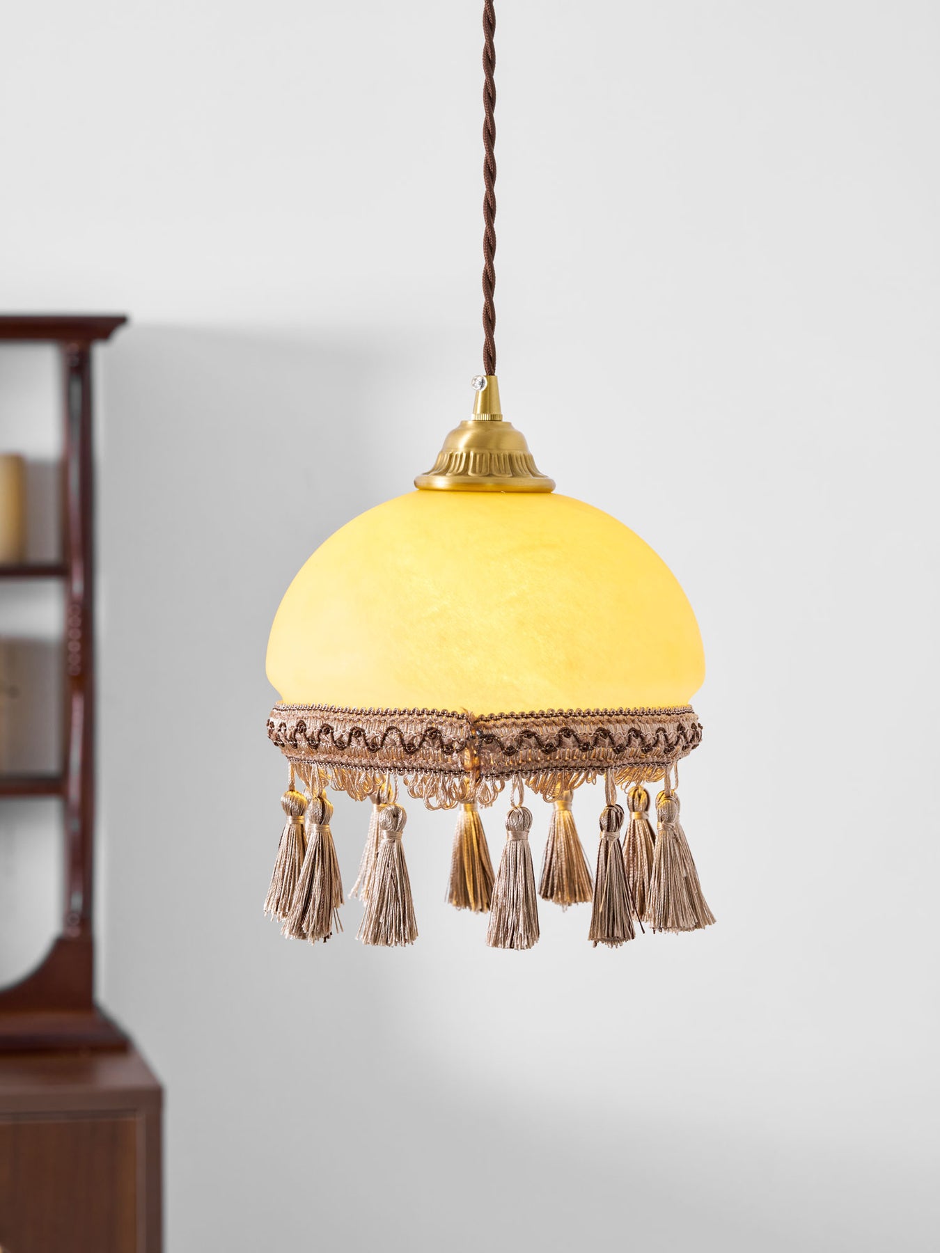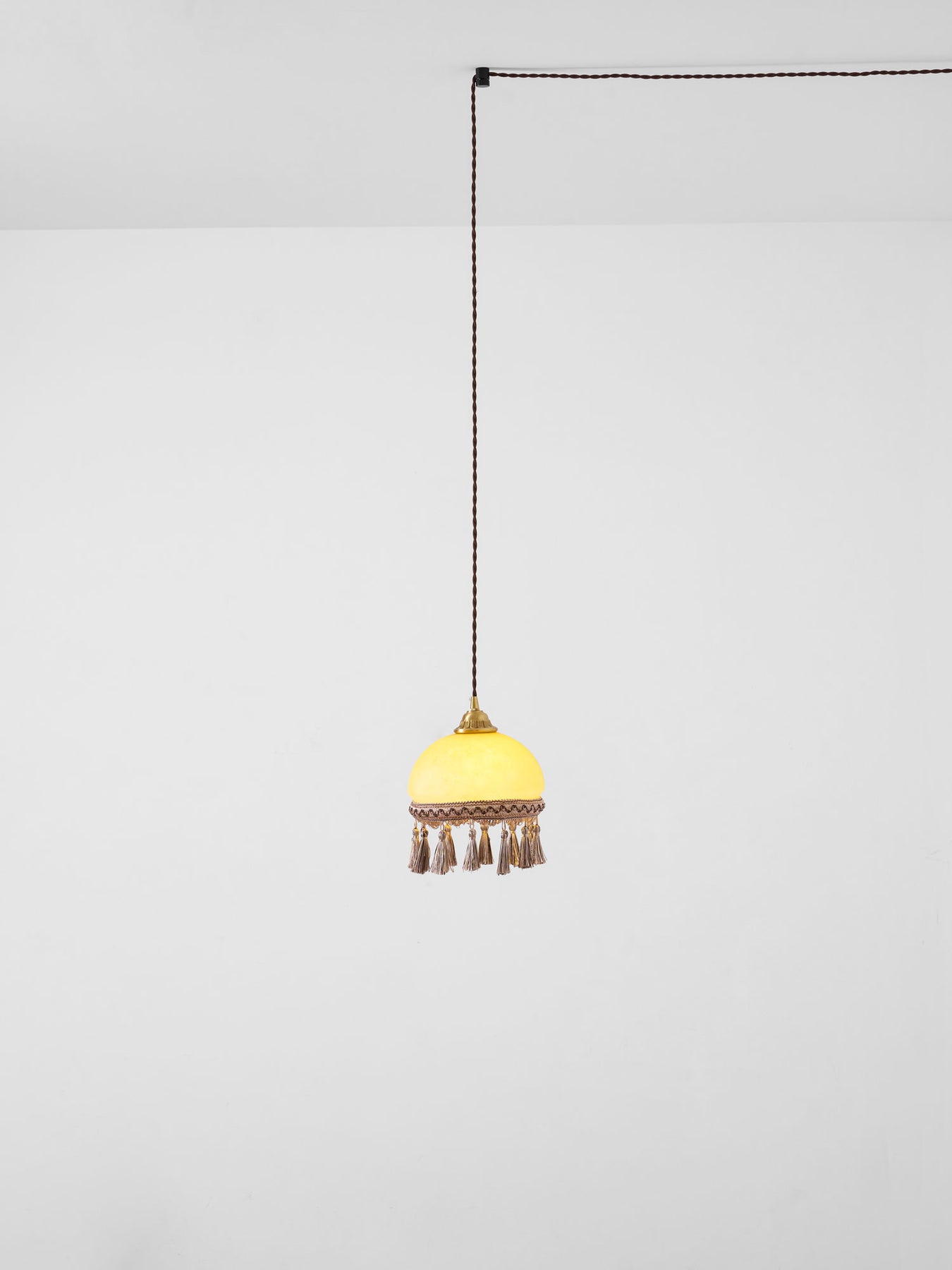 These pendants are inspired by the decadence of Victorian design and combine a contemporary free blown form with decorative fabric trimming. colorful style to your home.