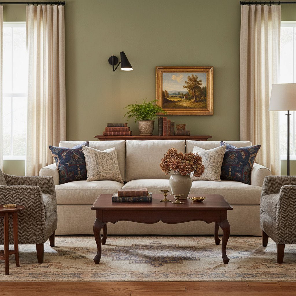 • Task Lighting: Table and floor lamps add layers of light that are perfect for reading or highlighting specific areas of the room. Ensure that floor lamps are proportionate to the size of the furniture they accompany.