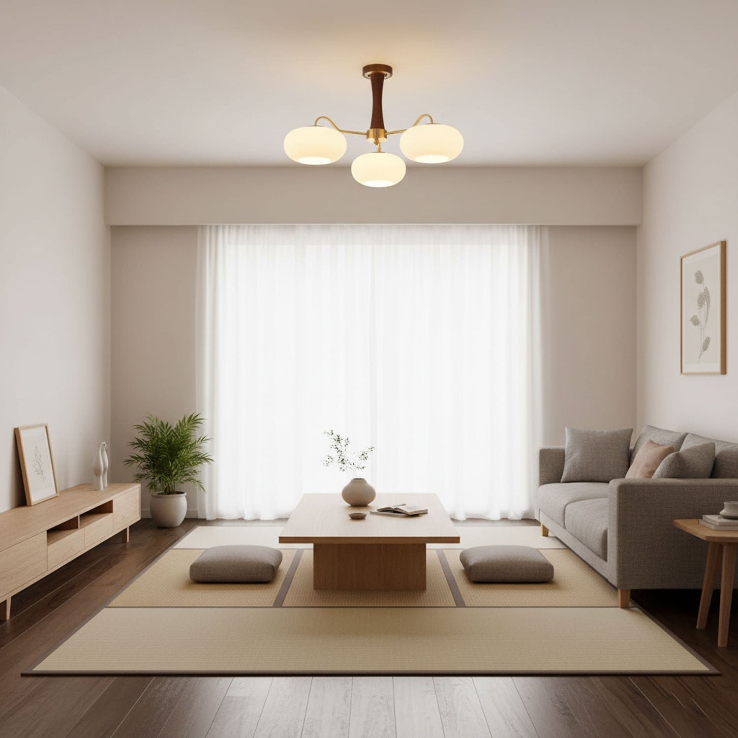 Chandeliers and Pendants: These are the focal points of the living room, especially in rooms with higher ceilings. To size appropriately, use the room dimension formula and ensure the fixture is in scale with the room’s layout. A general rule is to ensure there is at least 7 feet of clearance between the fixture and the floor.