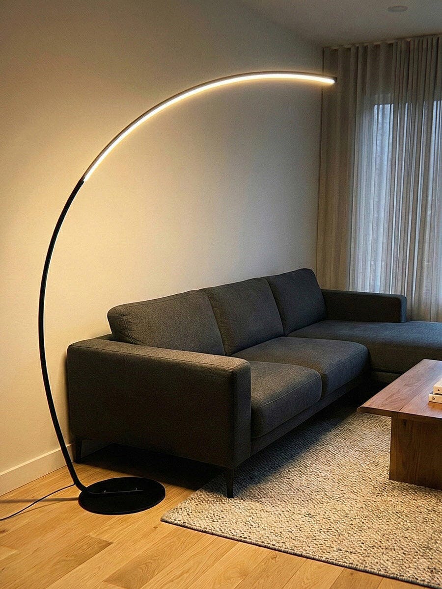 A beautiful, arching lighting experience. The unique Arc Lamp adds a minimalistic touch of lighting to your home. it is a statement in itself, embellishing your space through its artistic design.