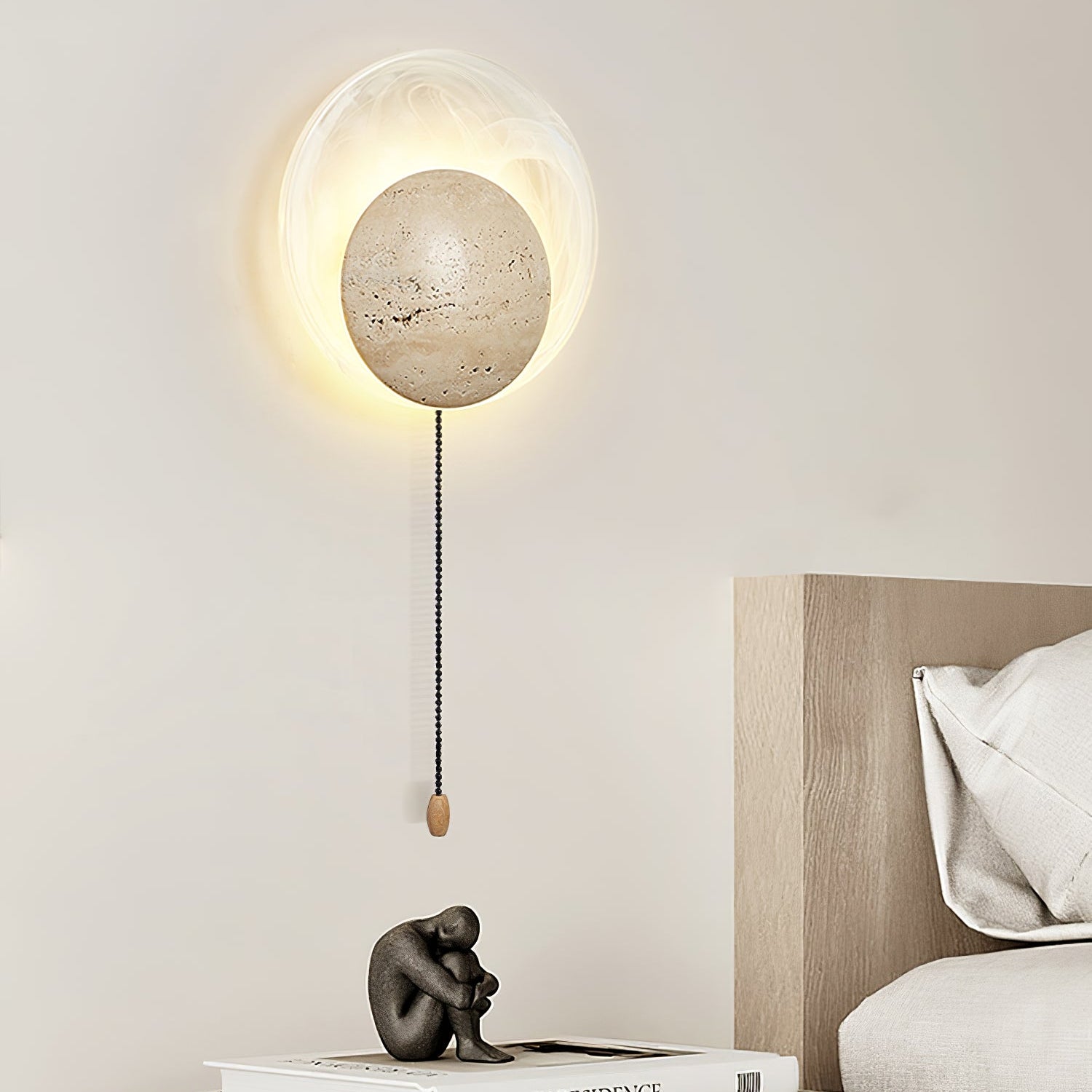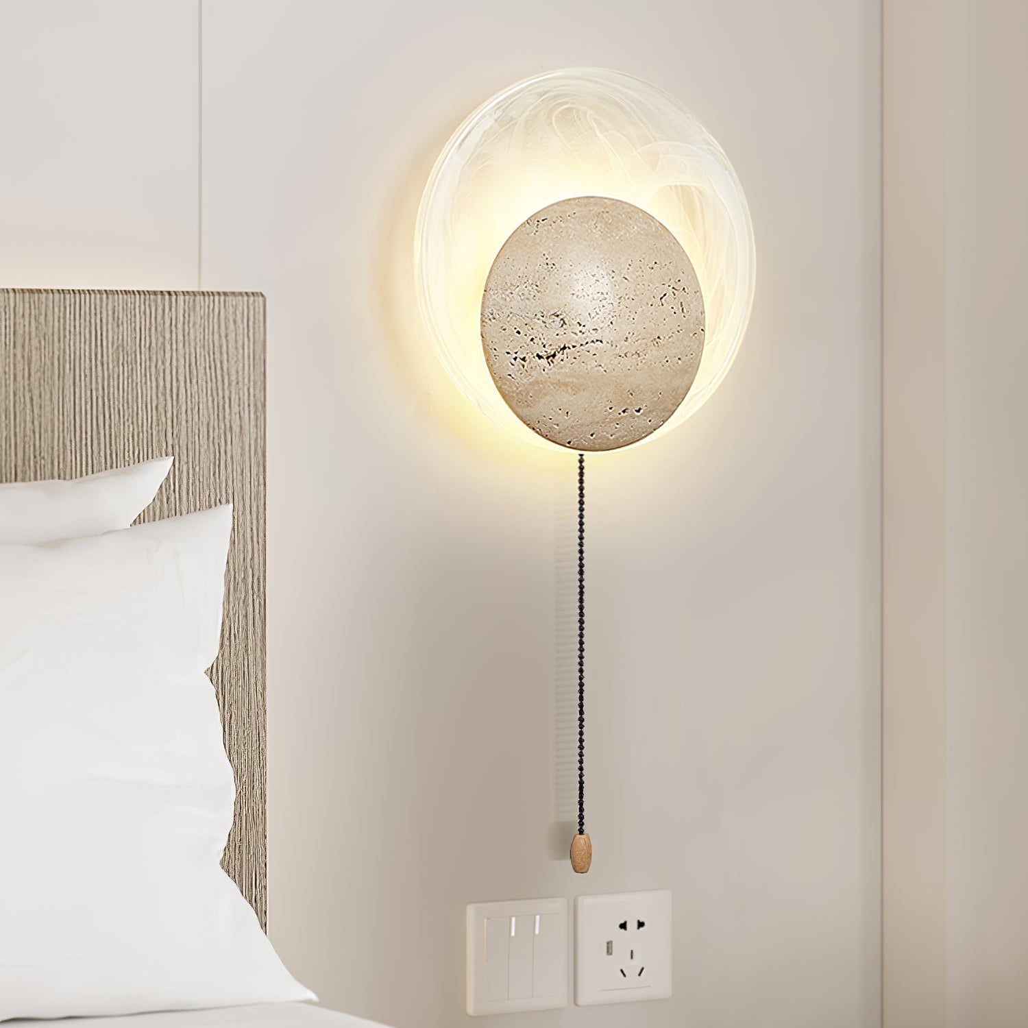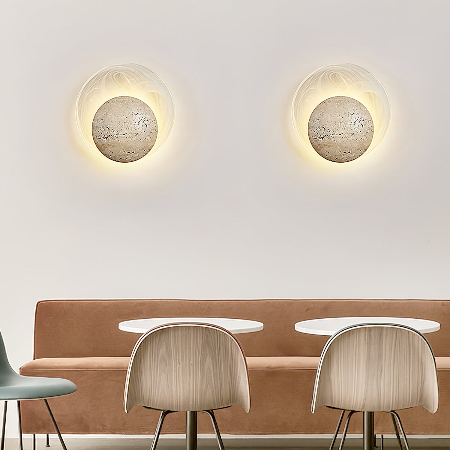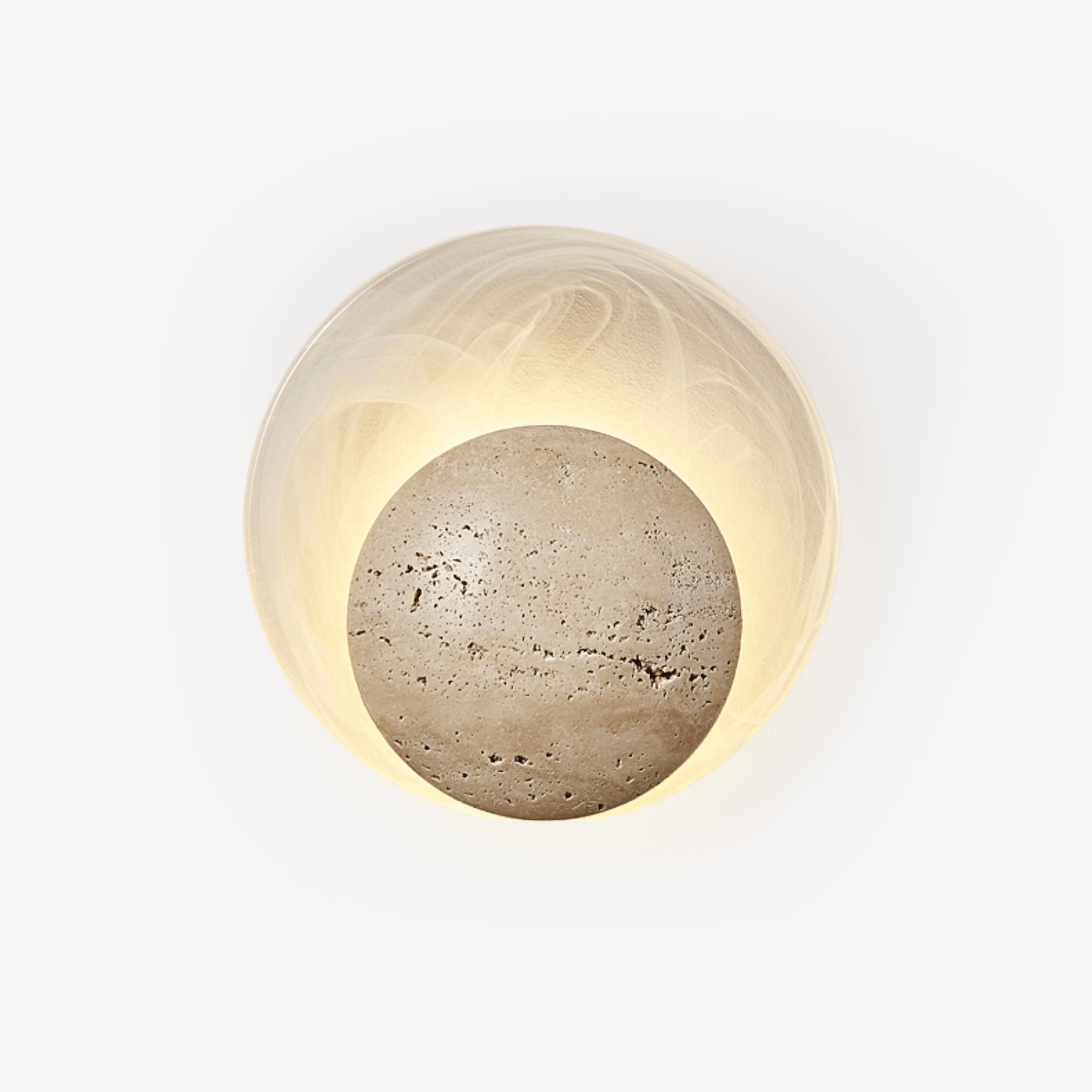 Discover the profound beauty of primordial beginnings with the Genesis Travertine Wall Lamp. This captivating fixture centers around a pure, off-white spherical form crafted from authentic travertine, its surface a tactile map of natural pores and unique geological textures. The sphere appears to emerge from, or be cradled within, a softly glowing, translucent outer shell. This outer light source casts an ethereal radiance that not only highlights the raw, ancient character of the travertine but also imbues the surrounding space with a warm, foundational glow. The Genesis Travertine Wall Lamp is more than just illumination; it's a sculptural ode to earth's origins, bringing a sense of grounded tranquility and sophisticated naturalism to any interior.
