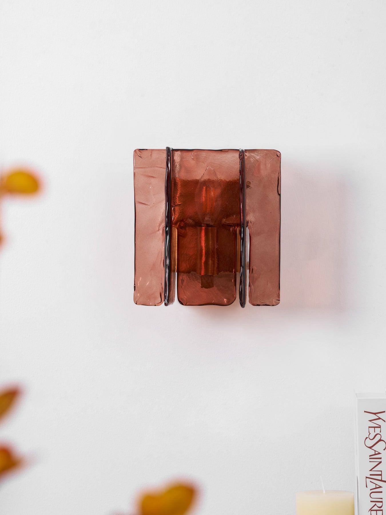 Beleuchten Sie Ihr Zuhause stilvoll mit der einzigartigen Wandleuchte Blason. Die auf einer Messinghalterung montierten Klarglasplatten fangen das Licht ein und brechen es, um auf den umliegenden Oberflächen dramatische Muster zu erzeugen.