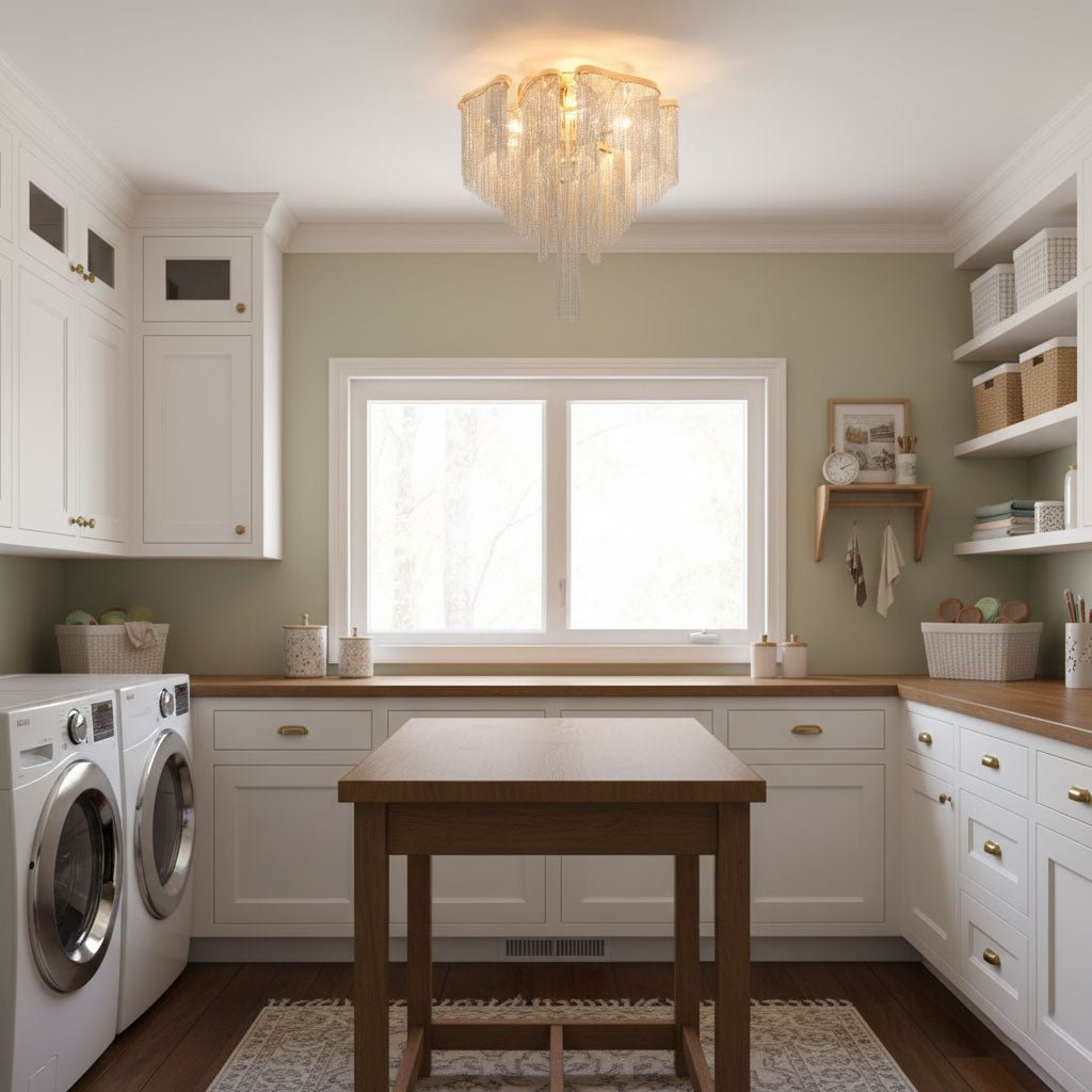 • Pendelleuchten über der Kücheninsel : Diese bieten wichtiges Arbeitslicht für die Zubereitung von Speisen und sollten 81–91 cm über der Arbeitsfläche hängen. Achten Sie darauf, dass jede Pendelleuchte etwa ein Viertel der Länge der Kücheninsel ausmacht, um eine ausreichende Beleuchtung zu gewährleisten, ohne den Raum zu überladen.