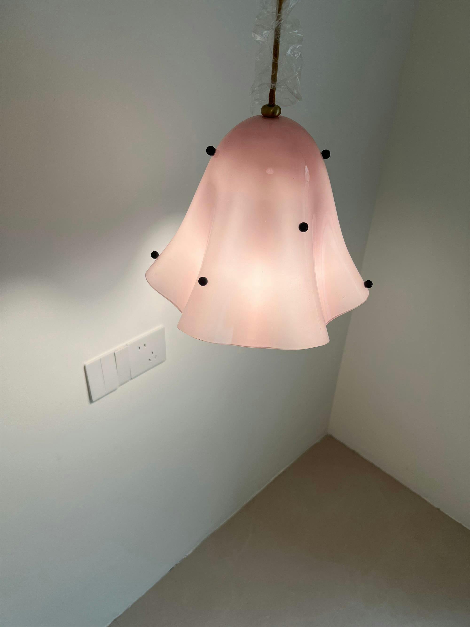 The Vera Bloom Pendant Lamp captures the elegant beauty of blooming flowers in shimmering glass. Its soft gradient colors create a dreamy glow, while its undulating silhouette adds a touch of movement and artistic flair to any space. Suspended from a sleek brass canopy, this chandelier is perfect for adding warmth and elegance to a dining room, bedroom, or creative nook. A true statement piece, it blends soft colors with a sculptural form, bringing light and poetry to your home.