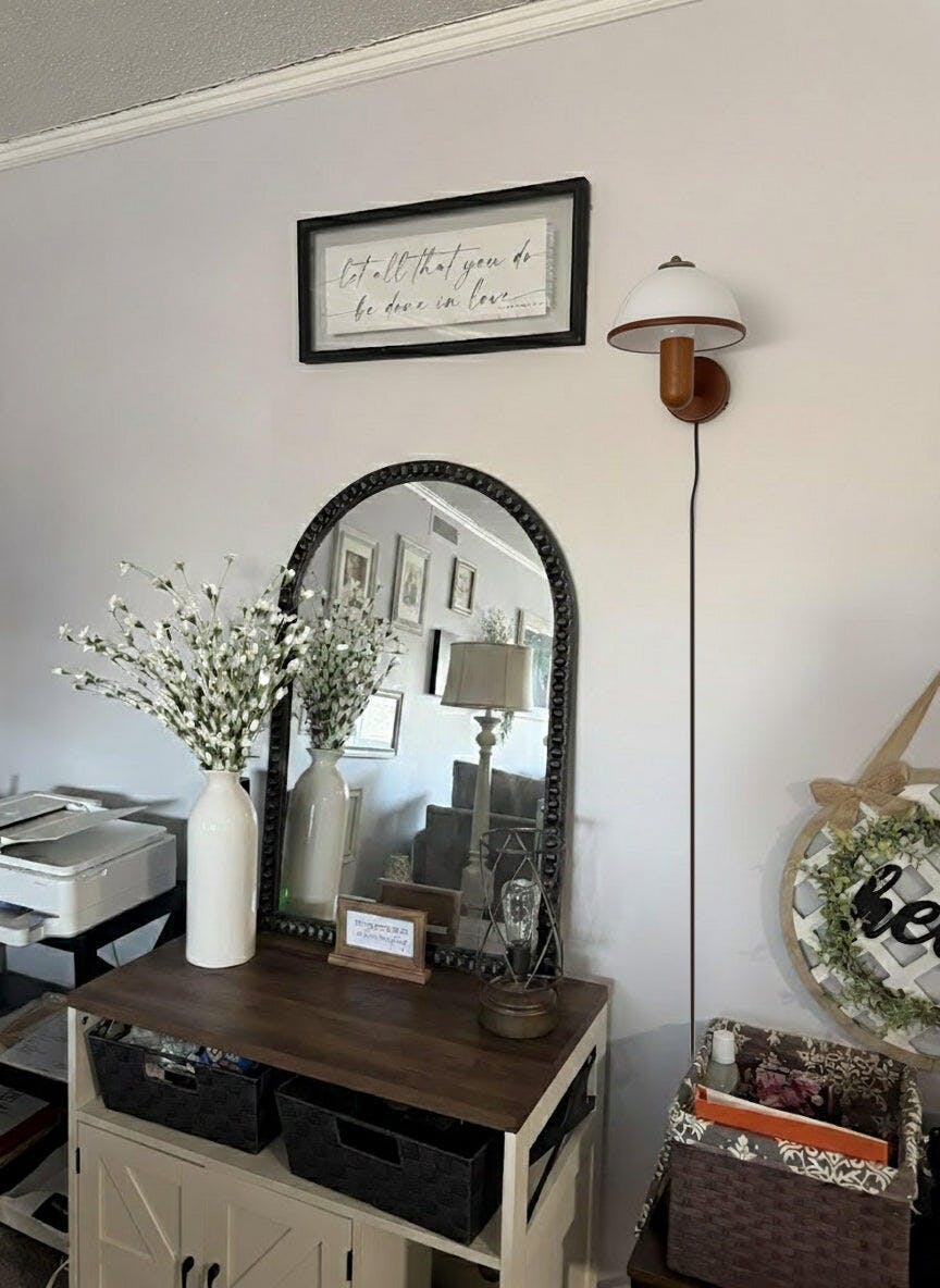 Schminktischbeleuchtung : Platzieren Sie zur Arbeitsbeleuchtung Wandleuchten auf beiden Seiten des Kosmetikspiegels, um Schatten zu minimieren. Diese sollten 165 bis 180 cm über dem Boden angebracht und für eine gleichmäßige Beleuchtung ausreichend verteilt sein.