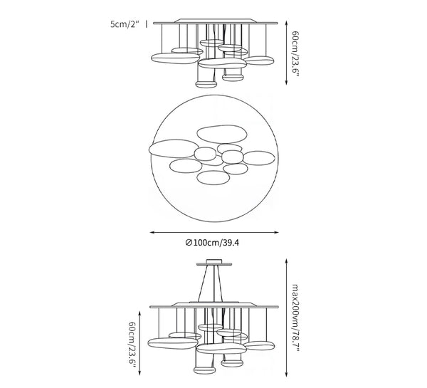 Aufhängungsgröße: Durchmesser 100 cm x H 200 cm / ∅ 39,4″ x H 78,7″