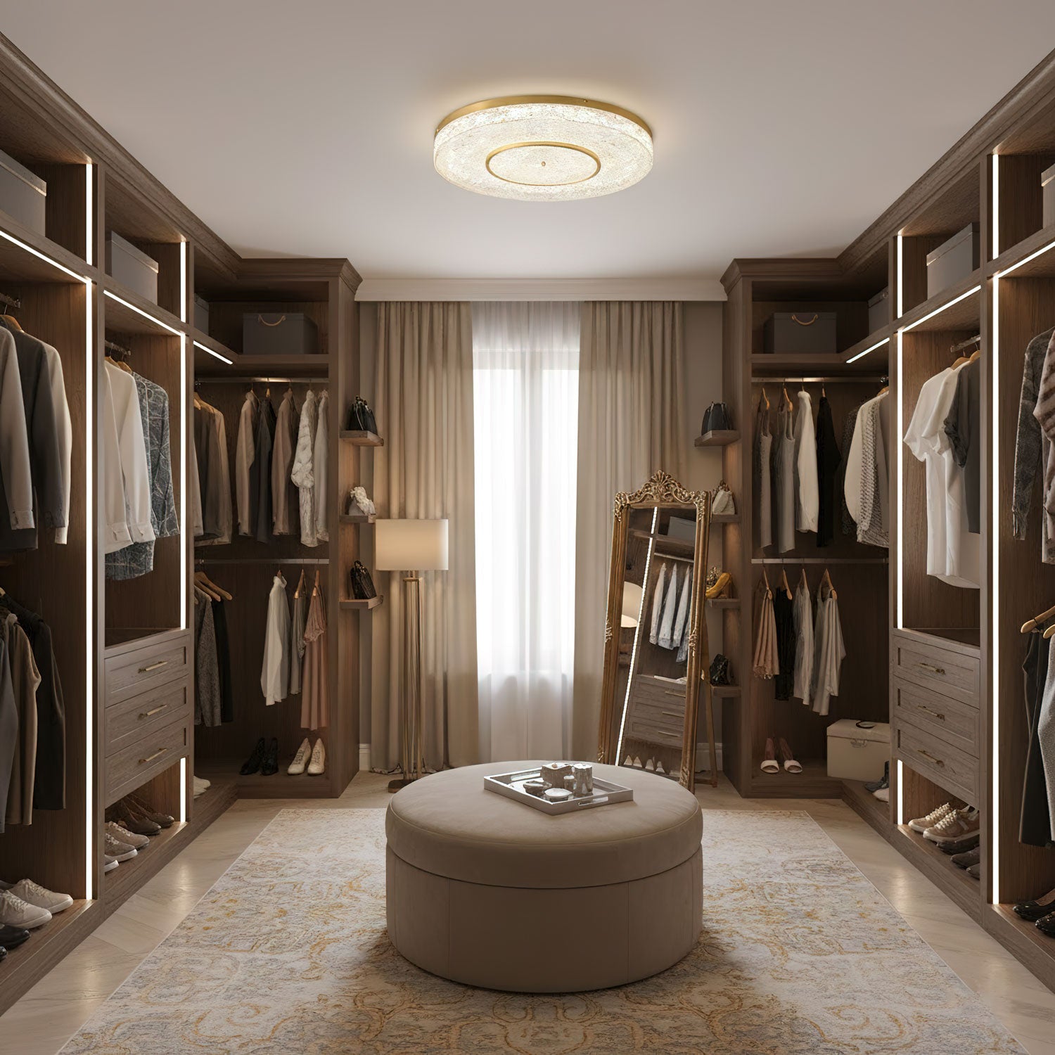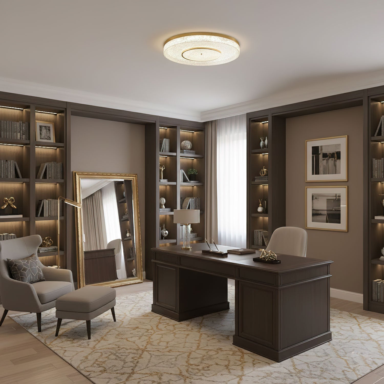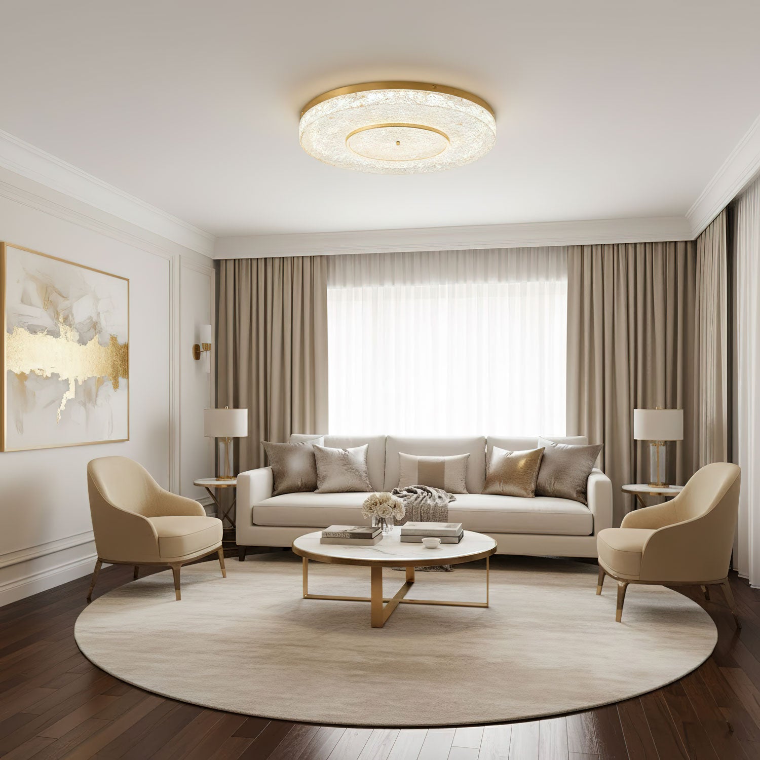 Die Vakkerlight Mysterious Circle Deckenleuchte besticht durch eine einzigartige Mischung aus Messing und Harz und besticht durch ihr rissiges Glas- oder Kristall-Erscheinungsbild. Ihre zentrale ringförmige Lichtquelle und die umliegenden, geschichteten Ringe strahlen ein raffiniertes und elegantes Licht aus und unterstreichen die Ästhetik moderner Innenräume.