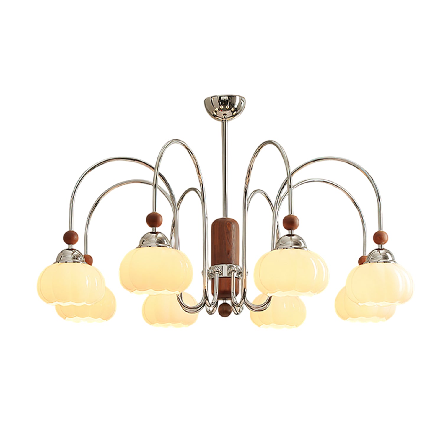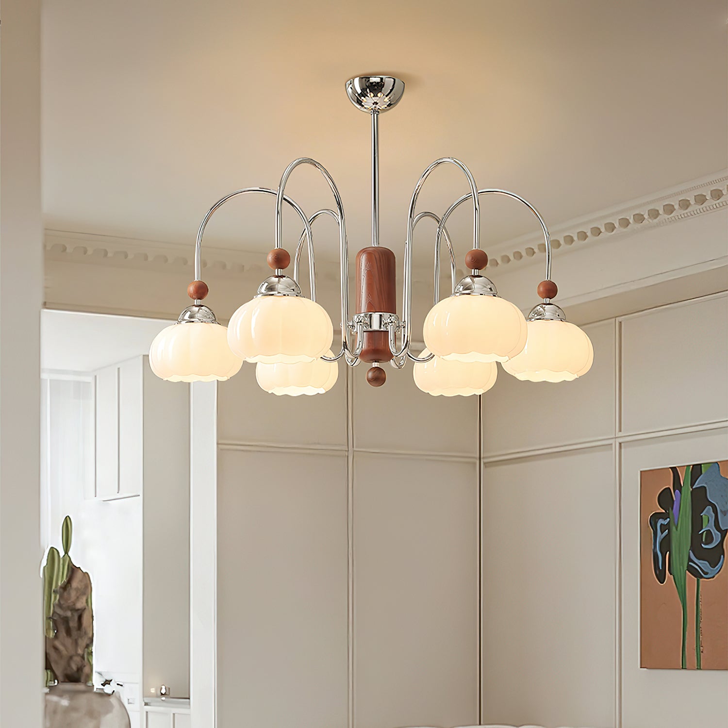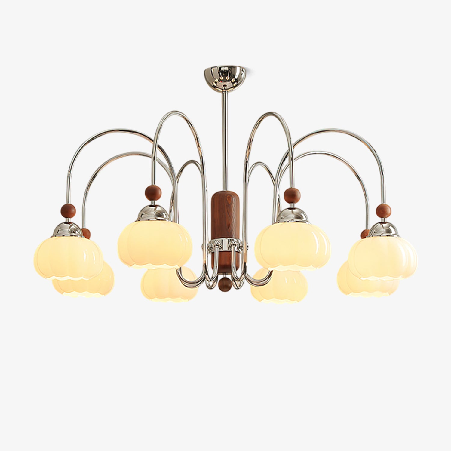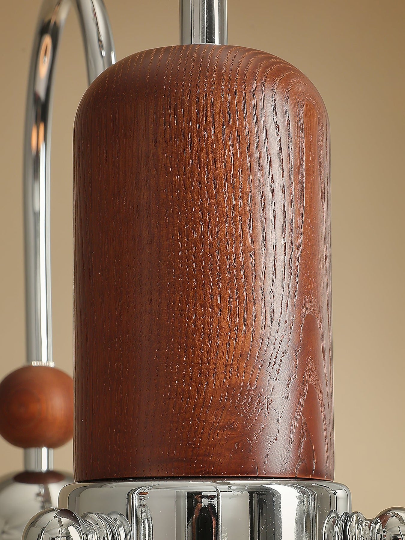Der Pomona Kronleuchter von Vakkerlight verbindet skulpturale Eleganz mit verspieltem Charme. Mit kürbisförmigen Glasschirmen, die von polierten Chromarmen getragen werden, und warmen Holzakzenten schafft dieser Kronleuchter die perfekte Balance zwischen Retro-Charakter und moderner Raffinesse. Seine einzigartige Form verbreitet ein sanftes, einladendes Licht und macht ihn zum idealen Statement für Esszimmer, Wohnräume oder jedes Interieur, das einen Hauch zeitloser Kunstfertigkeit sucht.