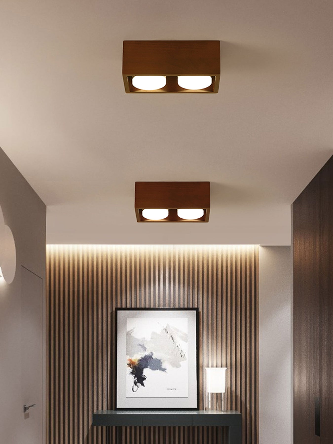 Die Cubra Holz-Deckenleuchte vereint modernen minimalistischen Stil in einer kompakten, skulpturalen Form. Aus edlem Holz geschnitzt, bildet sie einen perfekten Würfel und umhüllt eine vertiefte Lichtquelle mit klaren Linien und warmen, natürlichen Texturen. Diese minimalistische Leuchte strahlt ein sanftes, fokussiertes Licht aus und eignet sich perfekt zur Akzentuierung von Kunstwerken, Fluren oder ruhigen Wohnräumen.