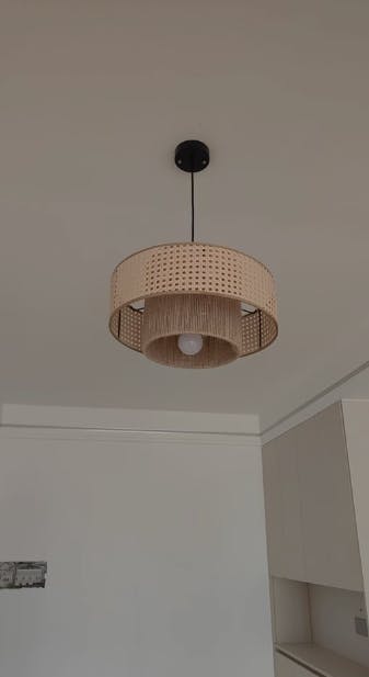 Verschönern Sie Ihren Raum mit unserer exquisiten japanischen konzentrischen Pendelleuchte. Erhältlich in fünf Größen, fängt die nahtlose Verschmelzung von Rattan und Hanfseil zeitlose Schönheit ein. Genießen Sie die Kunst der Unvollkommenheit, denn diese Pendelleuchte verleiht jedem Raum mühelos einen authentischen Hauch natürlicher Eleganz.