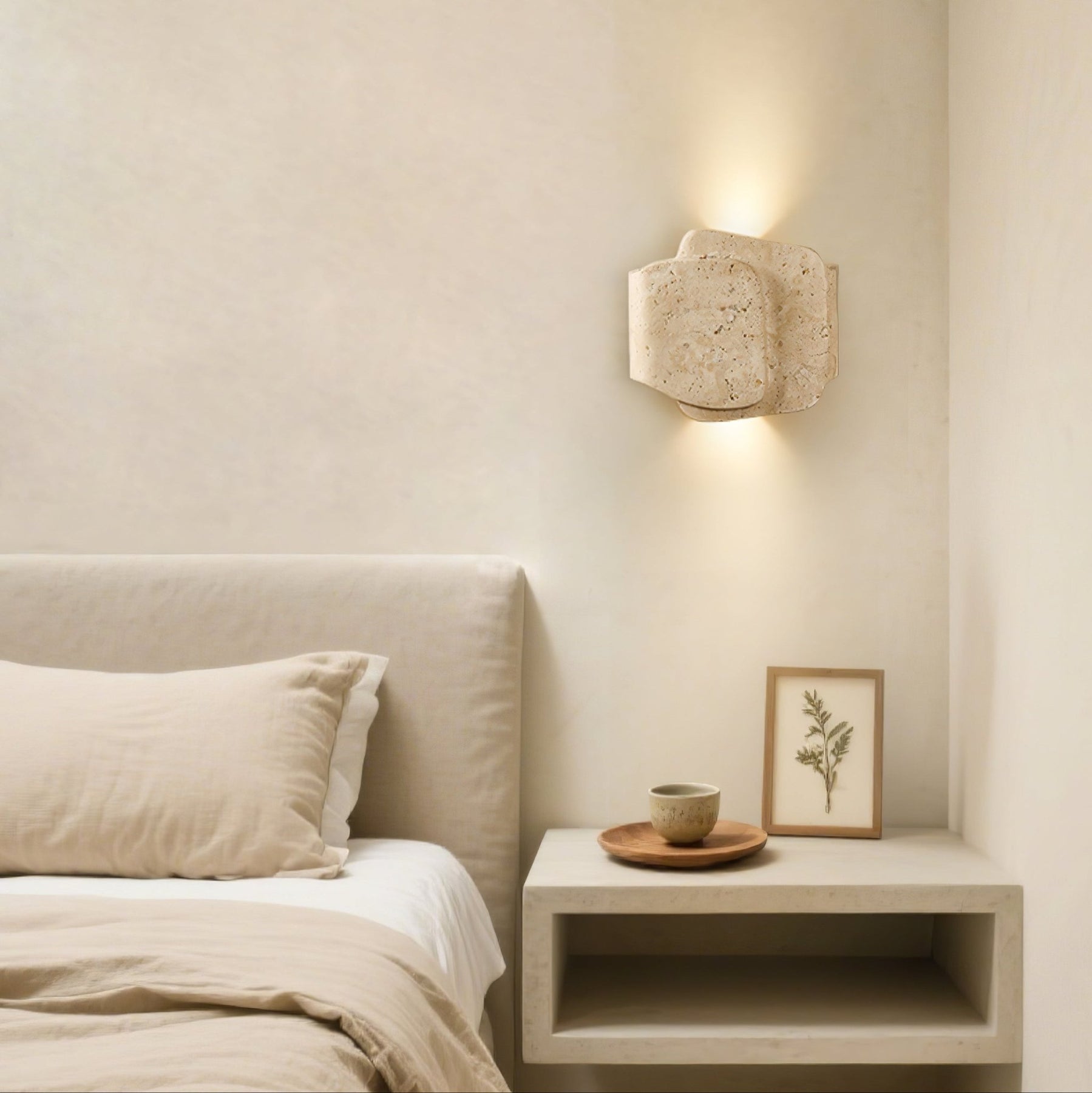 Entdecken Sie die skulpturale Schönheit der Layered Travertine Wandleuchte von Vakkerlight. Zwei asymmetrisch gestapelte Travertinplatten mit abgerundeten Ecken und einem natürlich matten Finish erzeugen ein warmes, stimmungsvolles Licht, das die organische Form unterstreicht. Das mehrschichtige Design verleiht Tiefe und künstlerischen Charakter und macht die Leuchte zu einem Blickfang in jedem minimalistischen, modernen oder naturinspirierten Interieur.