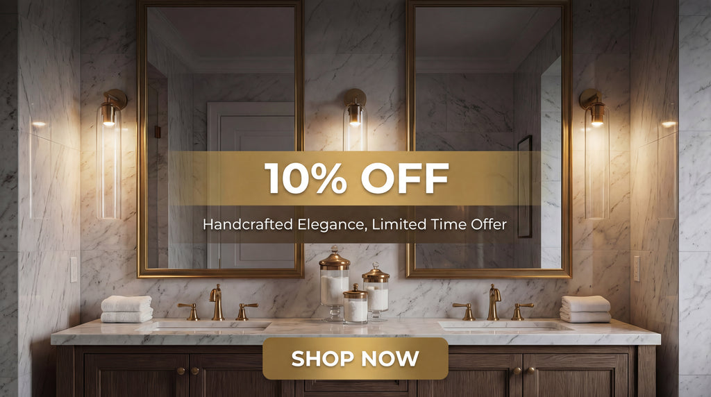 Schminktischbeleuchtung : Platzieren Sie zur Arbeitsbeleuchtung Wandleuchten auf beiden Seiten des Kosmetikspiegels, um Schatten zu minimieren. Diese sollten 165 bis 180 cm über dem Boden angebracht und für eine gleichmäßige Beleuchtung ausreichend verteilt sein.