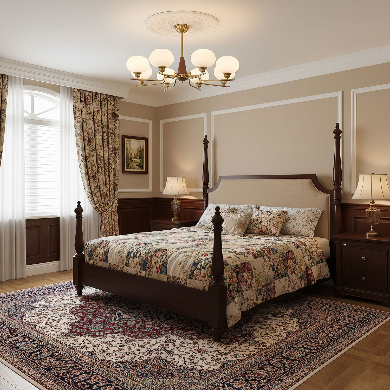 Ceiling Fixtures: Bedrooms benefit from soft, ambient lighting. Use the room dimension formula to ensure the ceiling fixture is properly scaled. Semi-flush or flush mounts work well for general lighting, while sconces or bedside lamps provide focused task lighting.