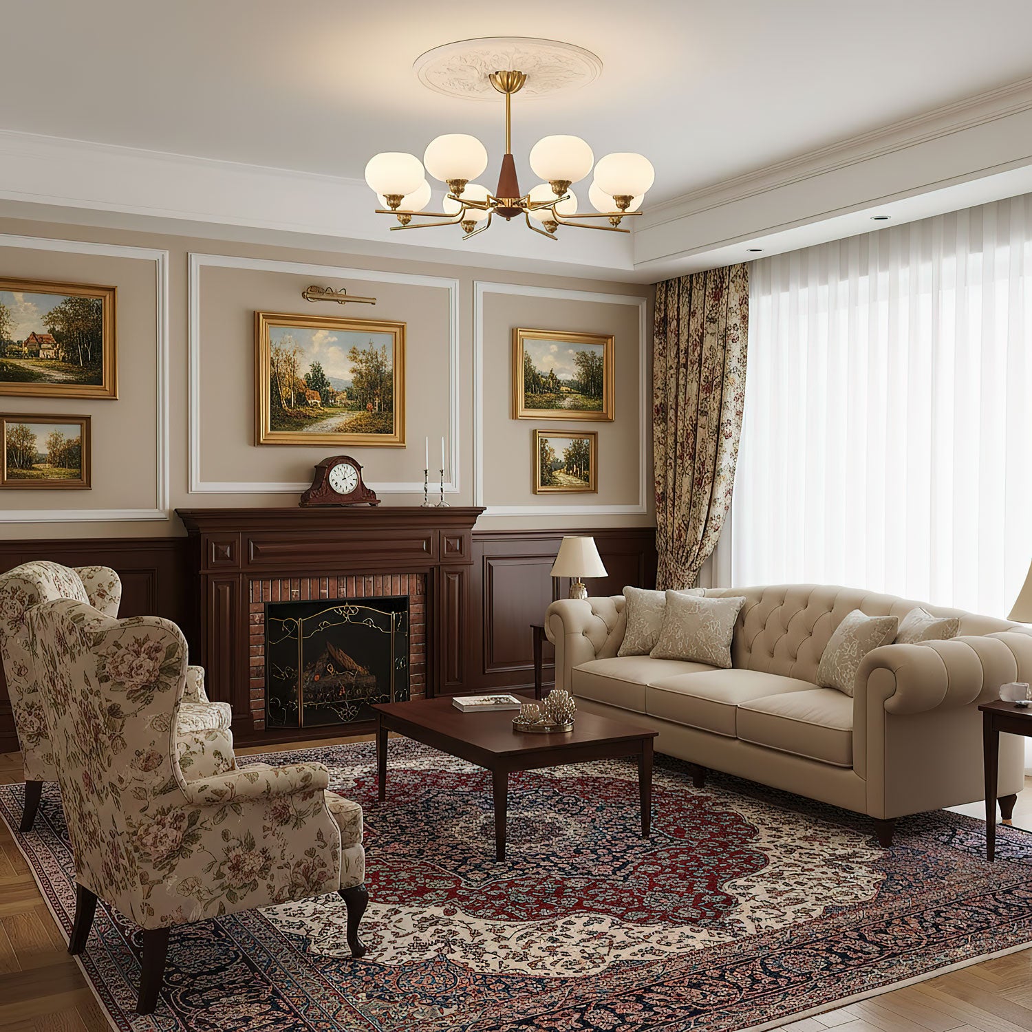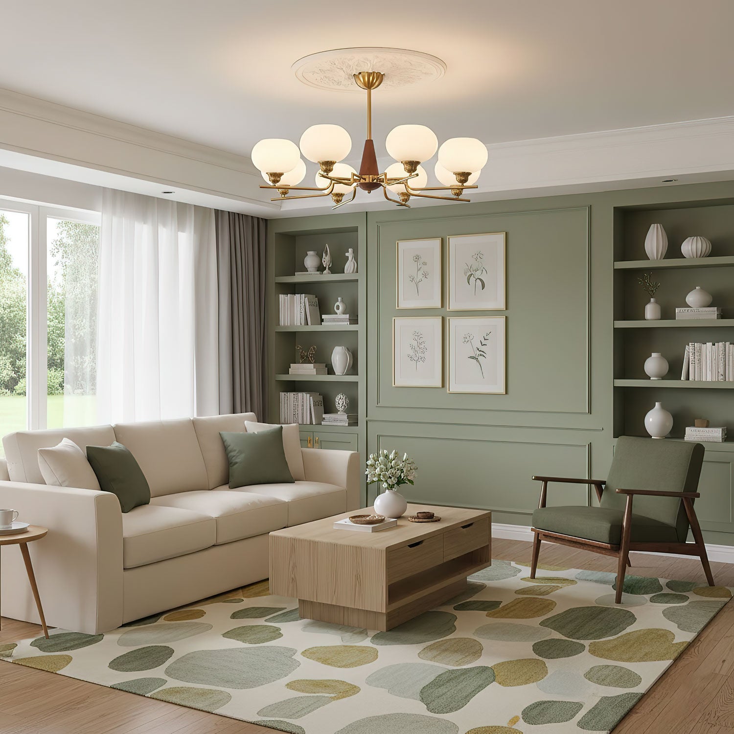 Chandeliers and Pendants: These are the focal points of the living room, especially in rooms with higher ceilings. To size appropriately, use the room dimension formula and ensure the fixture is in scale with the room’s layout. A general rule is to ensure there is at least 7 feet of clearance between the fixture and the floor.