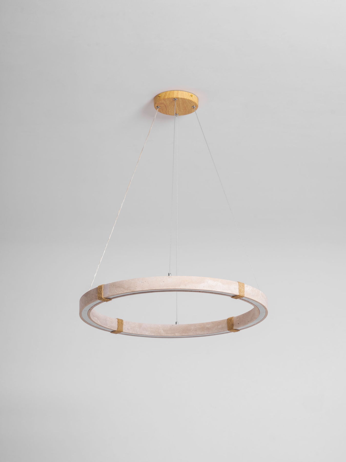 The Circle Travertine Pendant Lamp by Vakkerlight is a harmonious blend of raw travertine and minimalist design. Its circular form, suspended by sleek steel cables, creates a timeless centerpiece that radiates warm, natural light. Perfect for spaces seeking elegance with an organic touch.